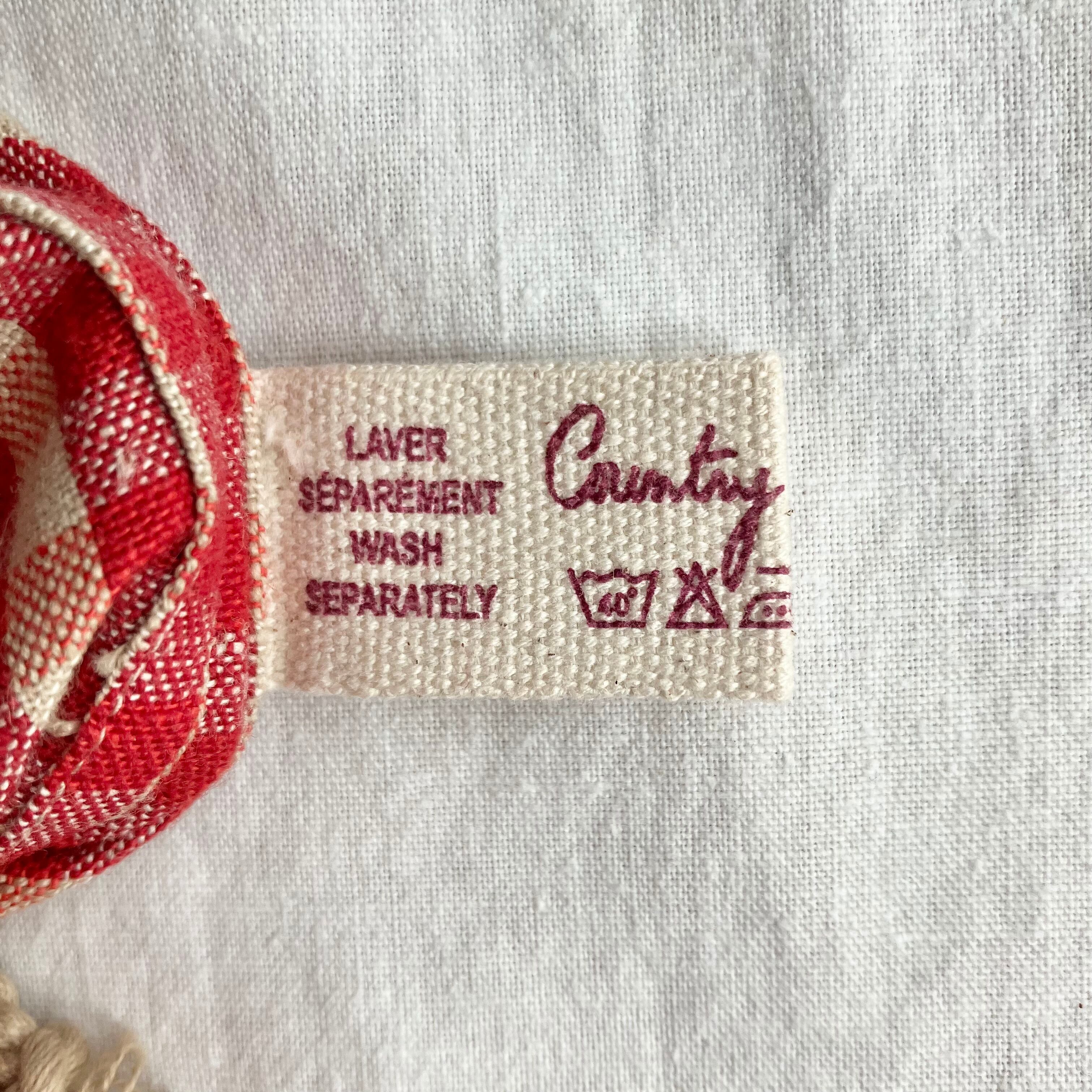 フランスの家具やリネンを手掛けているCountry Cornerの巾着ポーチです。※紐を絞るタイプではなく、口を紐でくくるタイプ。