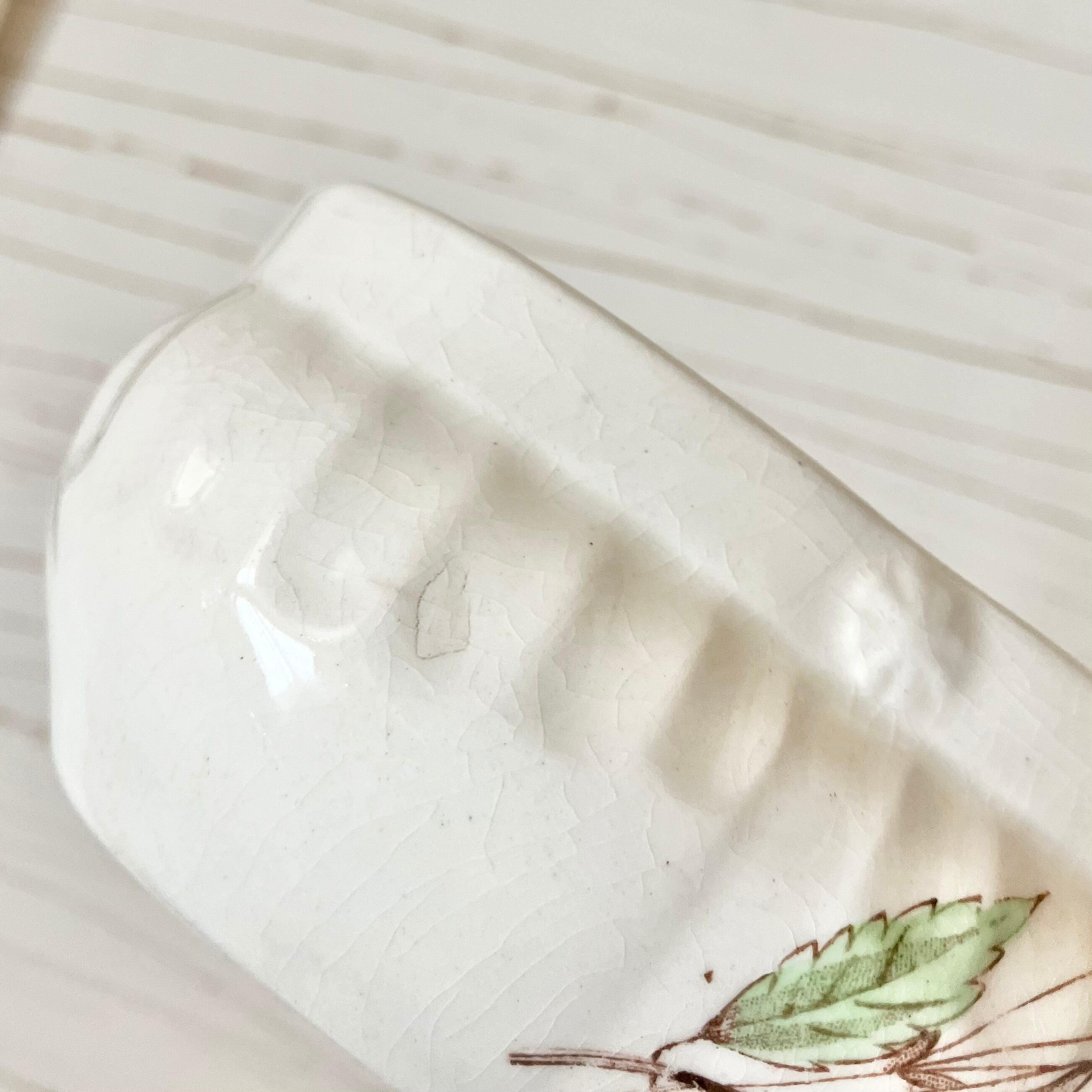当ショップでは、古いアンティーク製品を取り扱っているため、品物には欠けやキズ、色ムラなどのダメージがある場合がございます。また金属部分は酸化や黒ずみなどが出ている場合もございます。品物それぞれの時代と物語を感じ、その個性ごと楽しんでいただけると幸いです。
