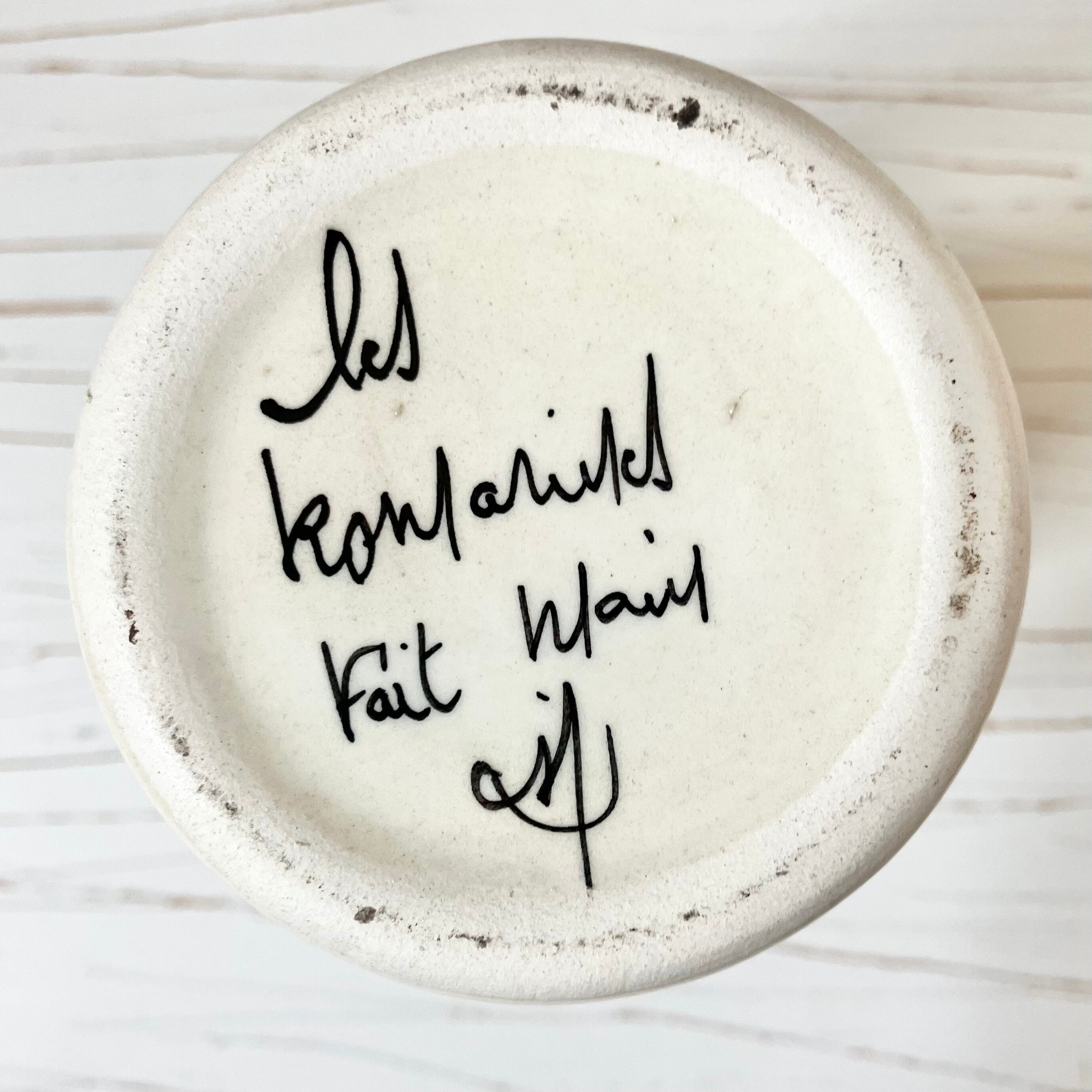 やわらかな乳白色に、フランス語でEpicesと書かれ、肩にはとても可愛らしい花束レリーフの陶花が飾られています。