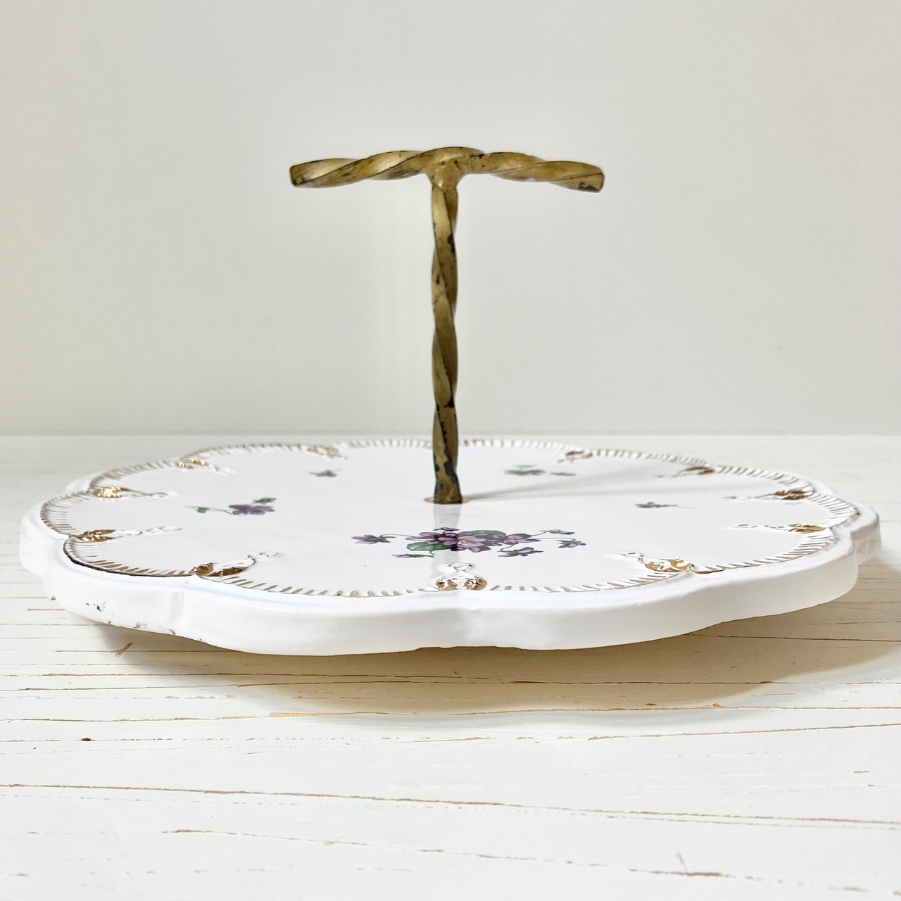 フレンチブロカントの持ち手付きチーズ/ケーキスタンドです。