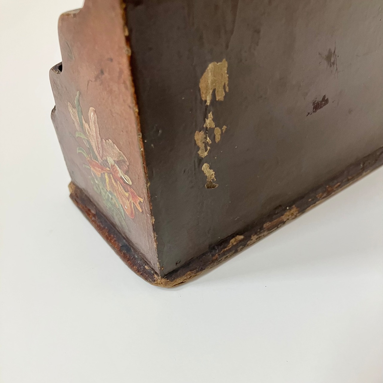 フレンチアンティークのレターラックです。ナポレオン三世時代に流行したパピエマシェという、紙を何重にも圧縮した後に膠などで塗り固める特殊な技法で造られています。