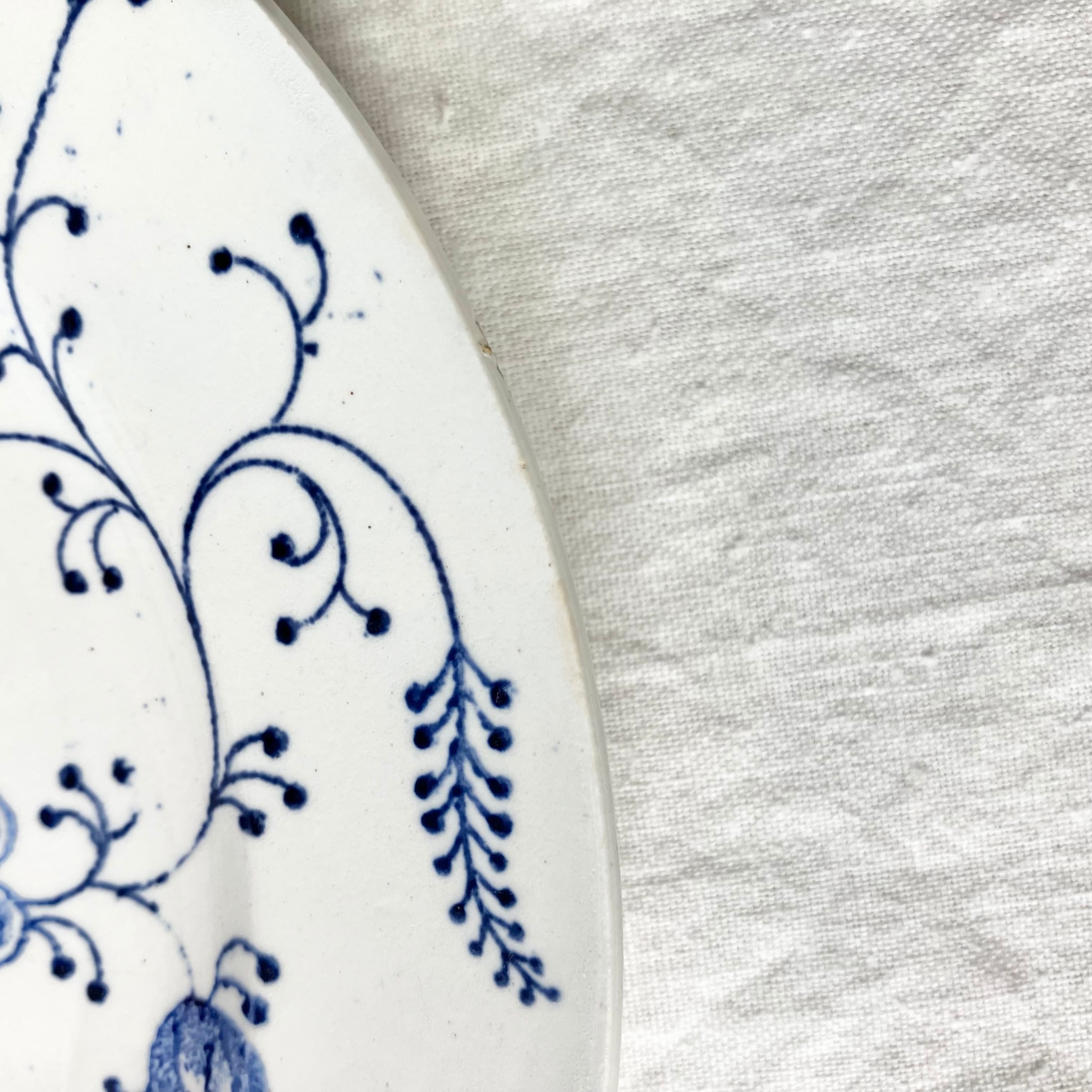 美しい白地に、サックスブルーで可愛らしい小花がプレート全体に描かれています。