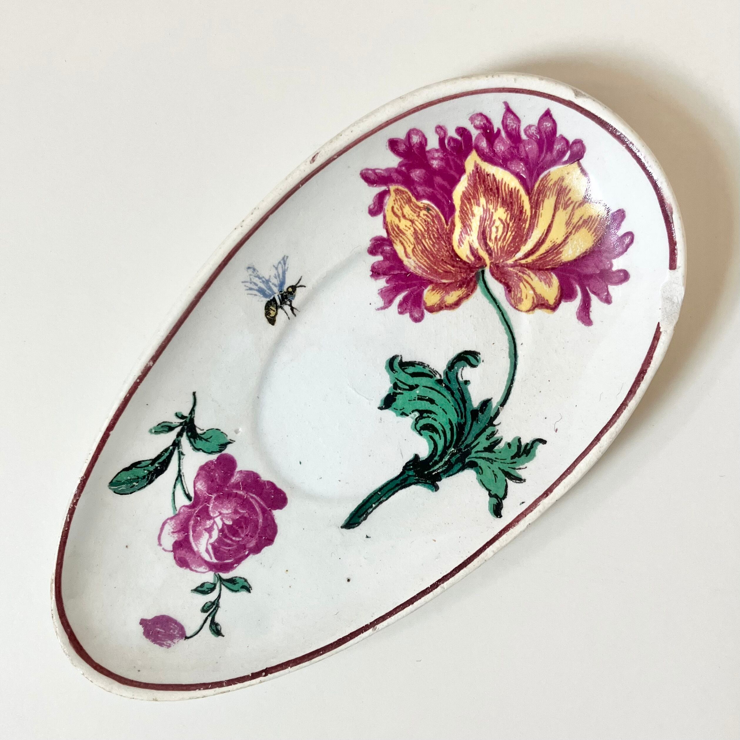 白地に美しい多色でバラやピオニーなどの花々が描かれています。プレートを別で小皿にしても可愛いと思います。