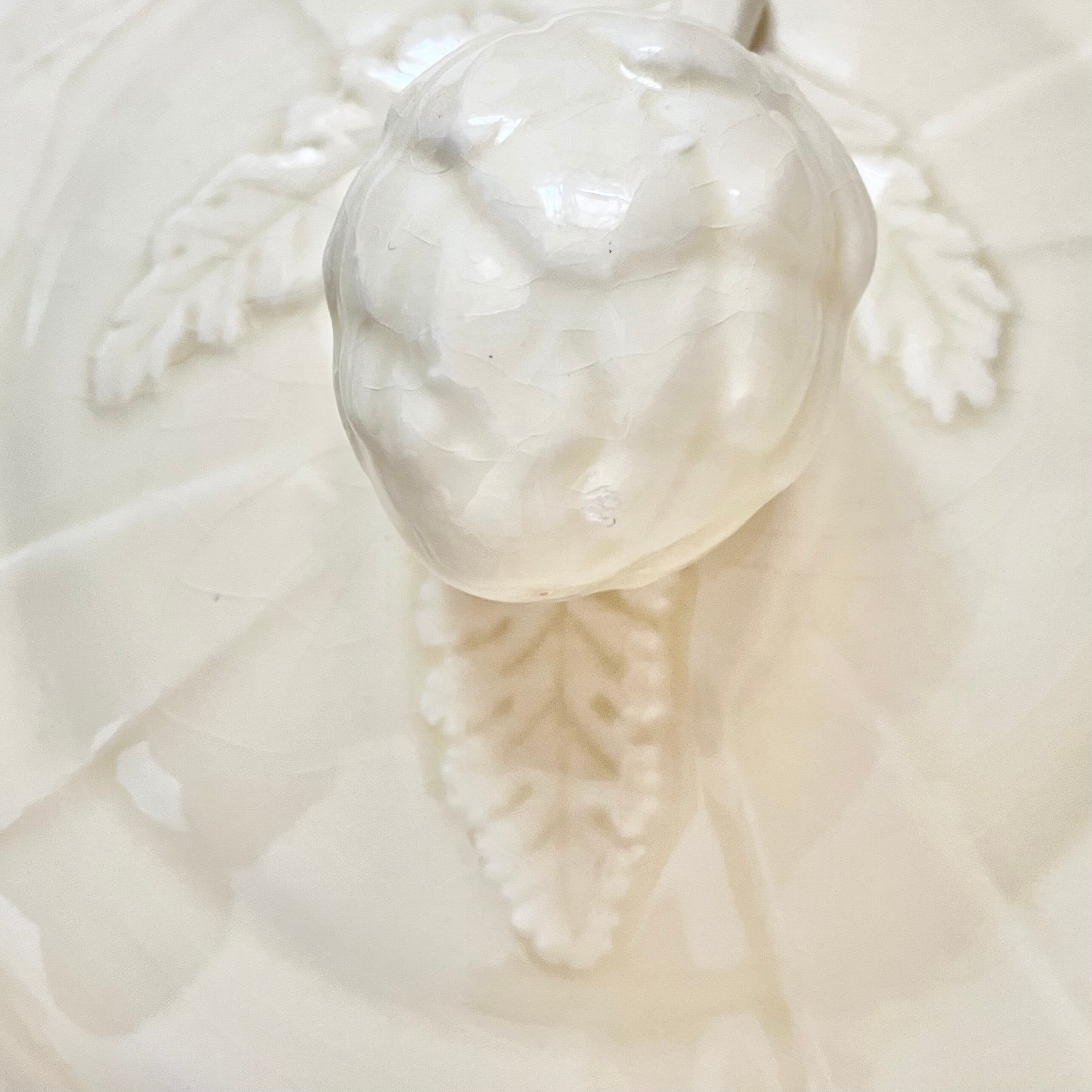 やわらかいアイボリーカラーに、とても珍しいニャンコのレリーフが施されています。持ち手は素晴らしいロカイユで、摘みは愛らしい大きなアーティチョーク。アイボリー×ブラックラインの色合いもとても可愛いです。