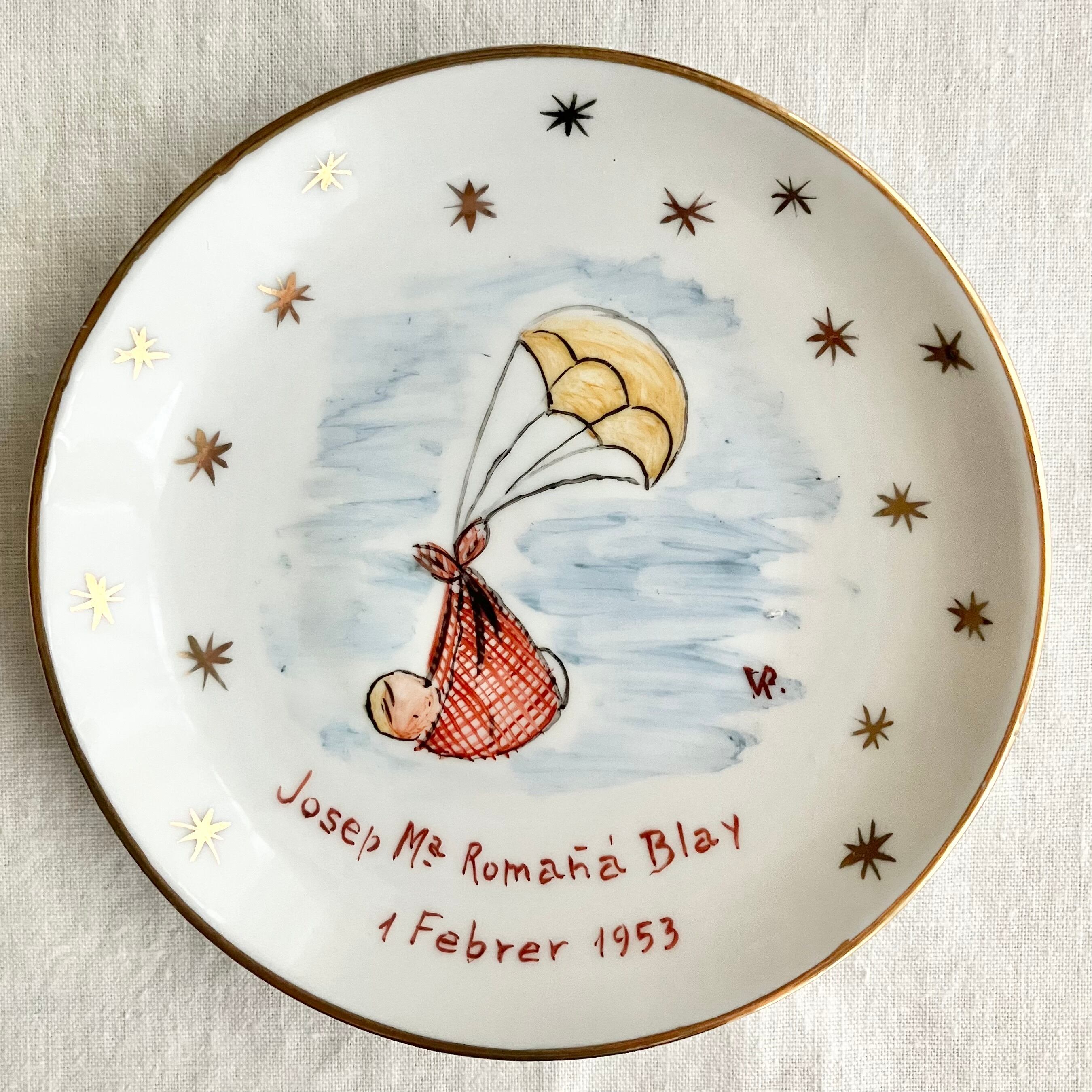 きっと赤ちゃんの誕生をお祝いして造られたプレートなのでしょう、とてもあたたかい雰囲気の素敵なプレートです。