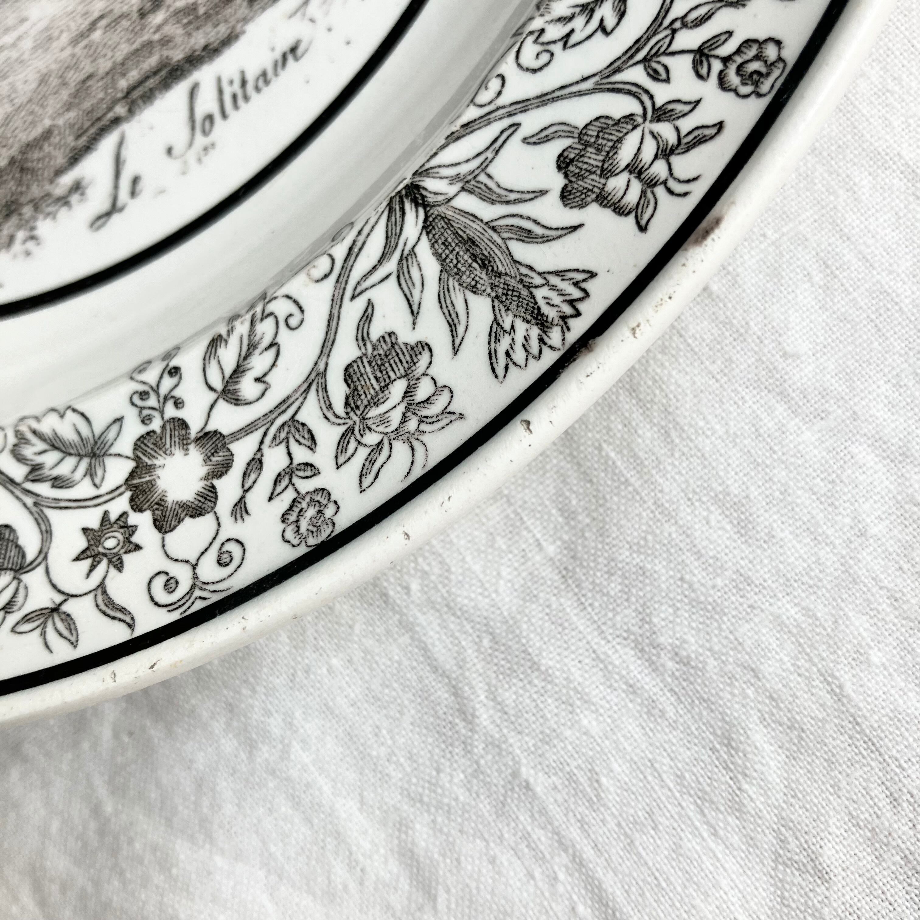 Gien 神聖な雰囲気の美しいグリザイユプレート Le Solitaire