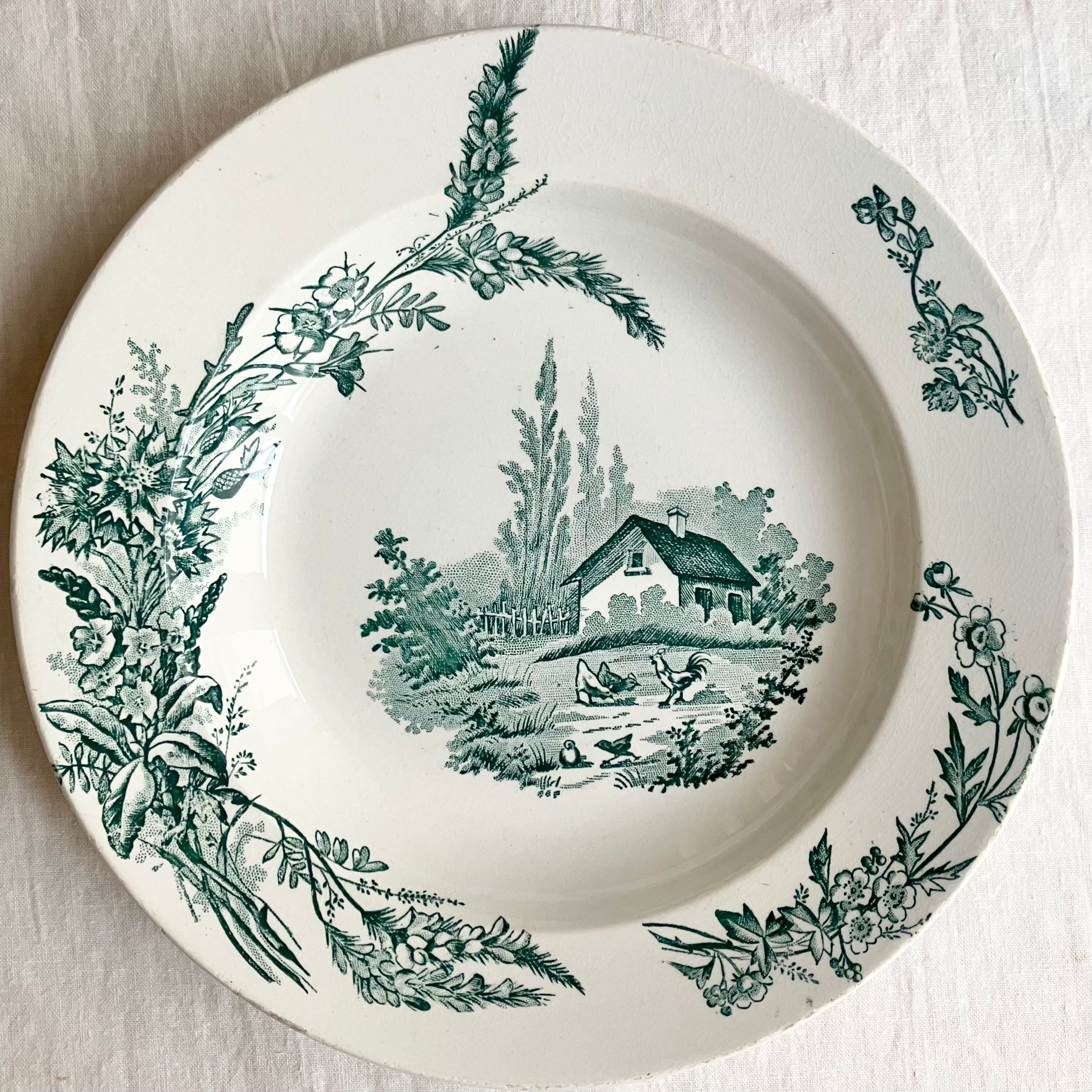 【W様お取置き 10/24】Pexonne 可愛らしいにわとりと田園風景のスーププレート Champêtre