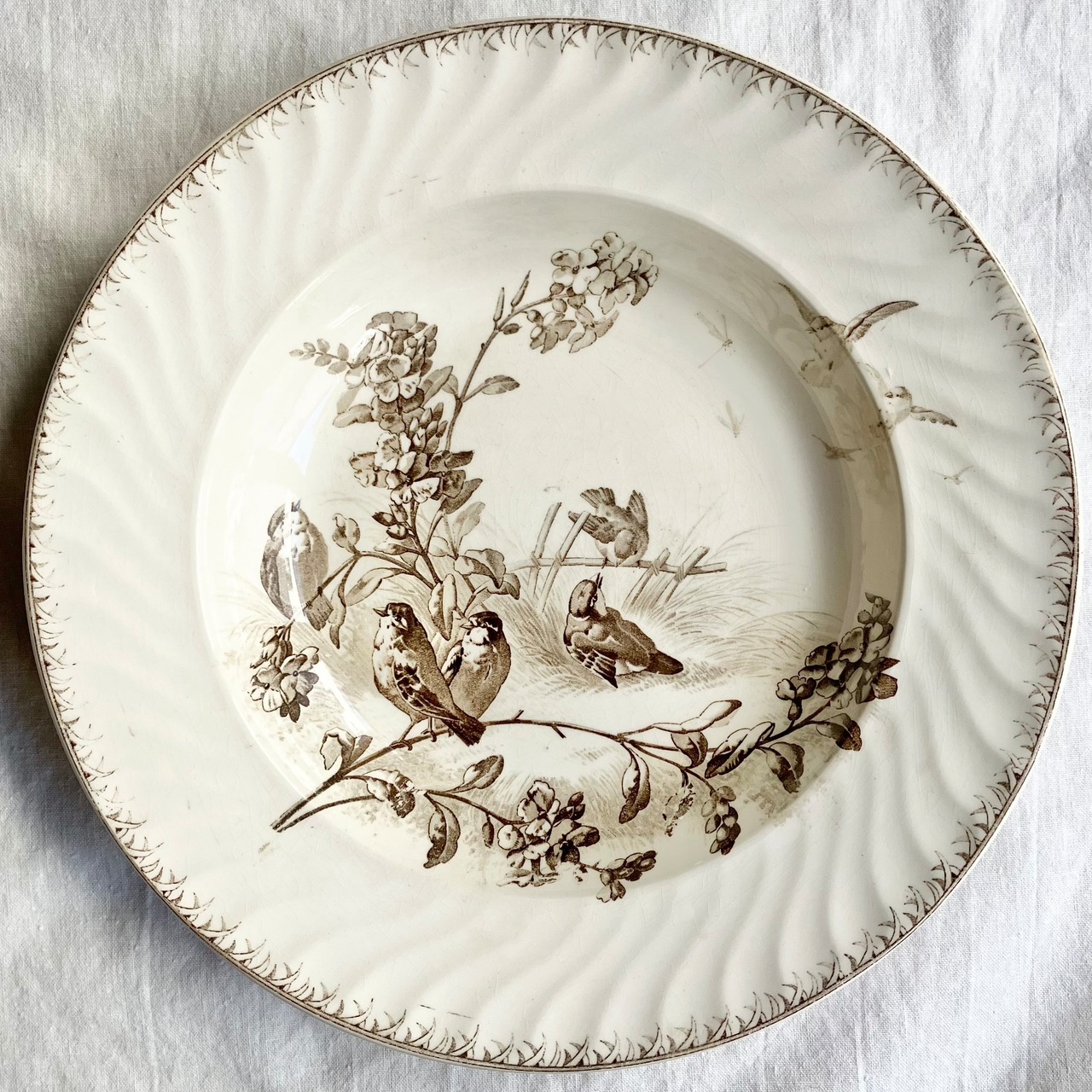 1800年代末頃のSarreguemines、Printempsシリーズのスーププレートです。