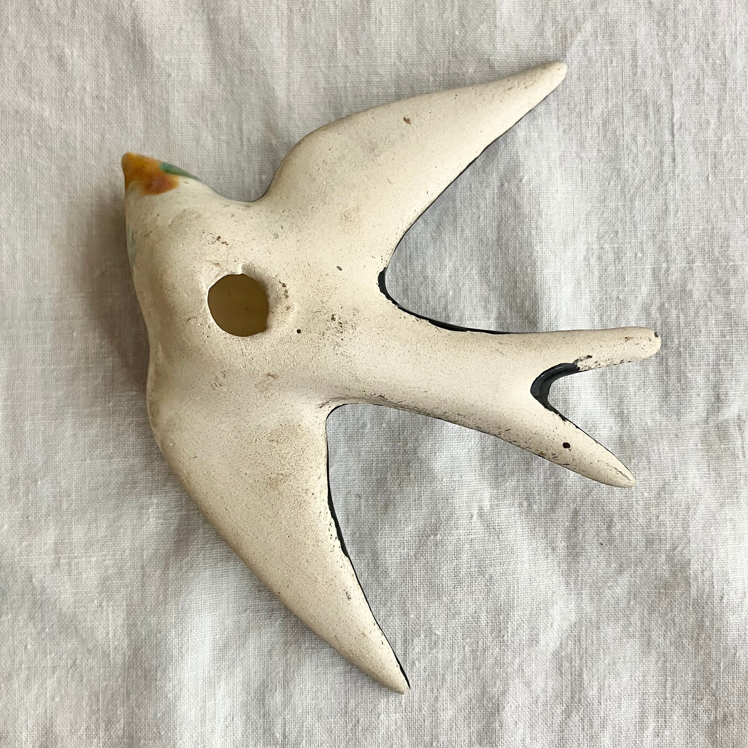 フランスで1950年代に造られた陶器製のツバメの壁掛けオブジェです。
