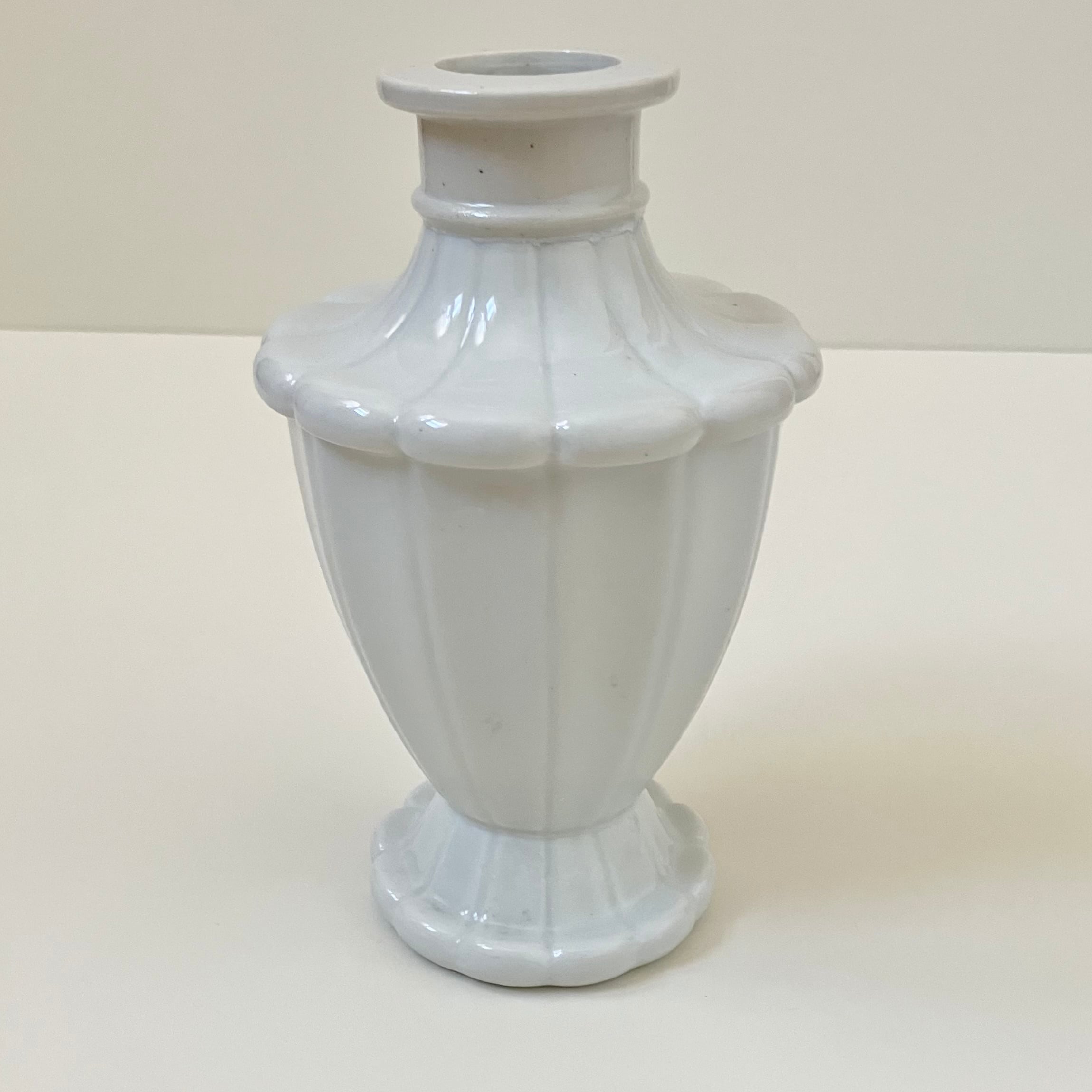 味のあるホワイトで、フラワーレリーフやくびれたフォルムがとても美しく、フレンチシックな雰囲気が魅力的です。