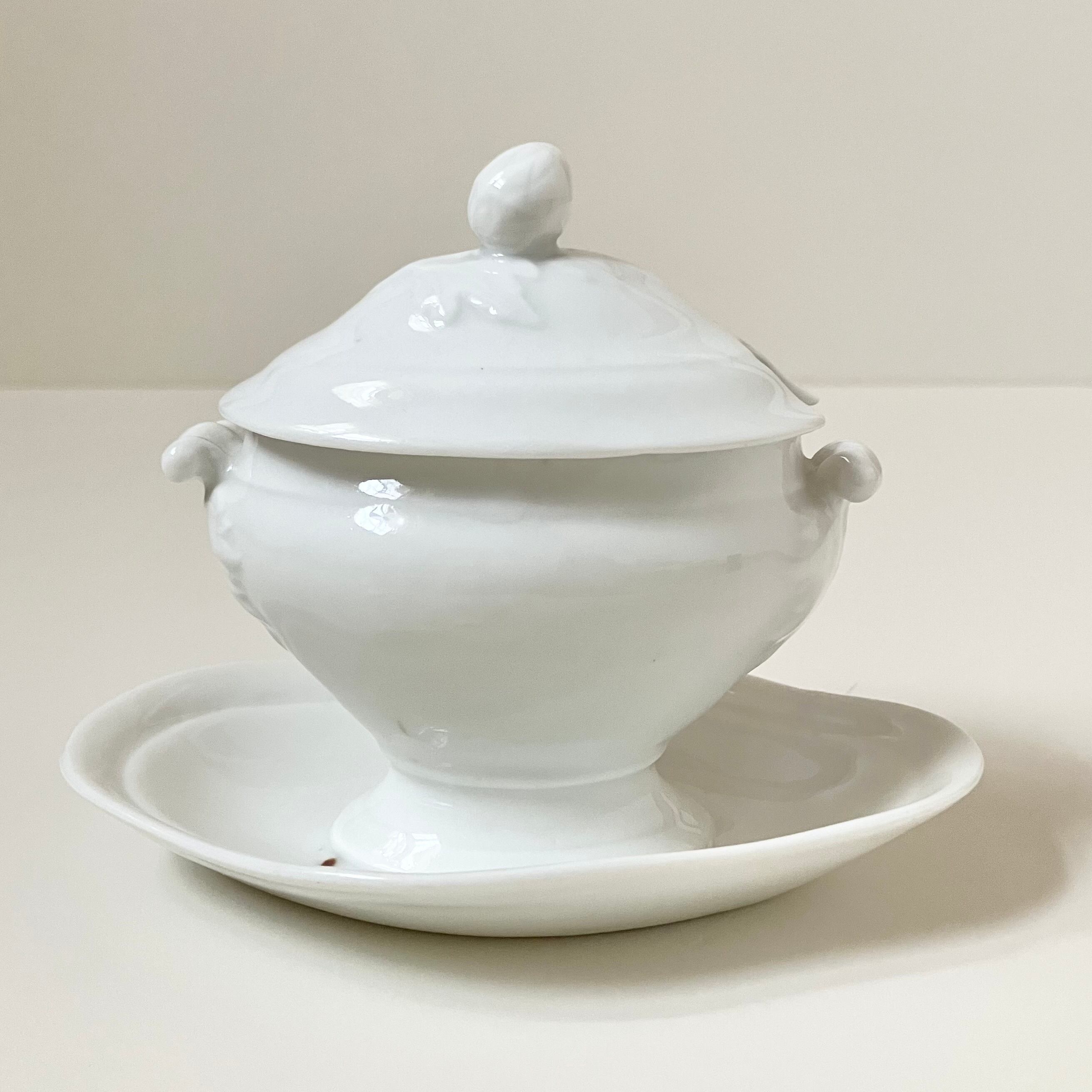 真っ白で艶やかなボディに、可愛らしい小さなイチゴやアーティチョークのような摘みがちょこんと乗っています。