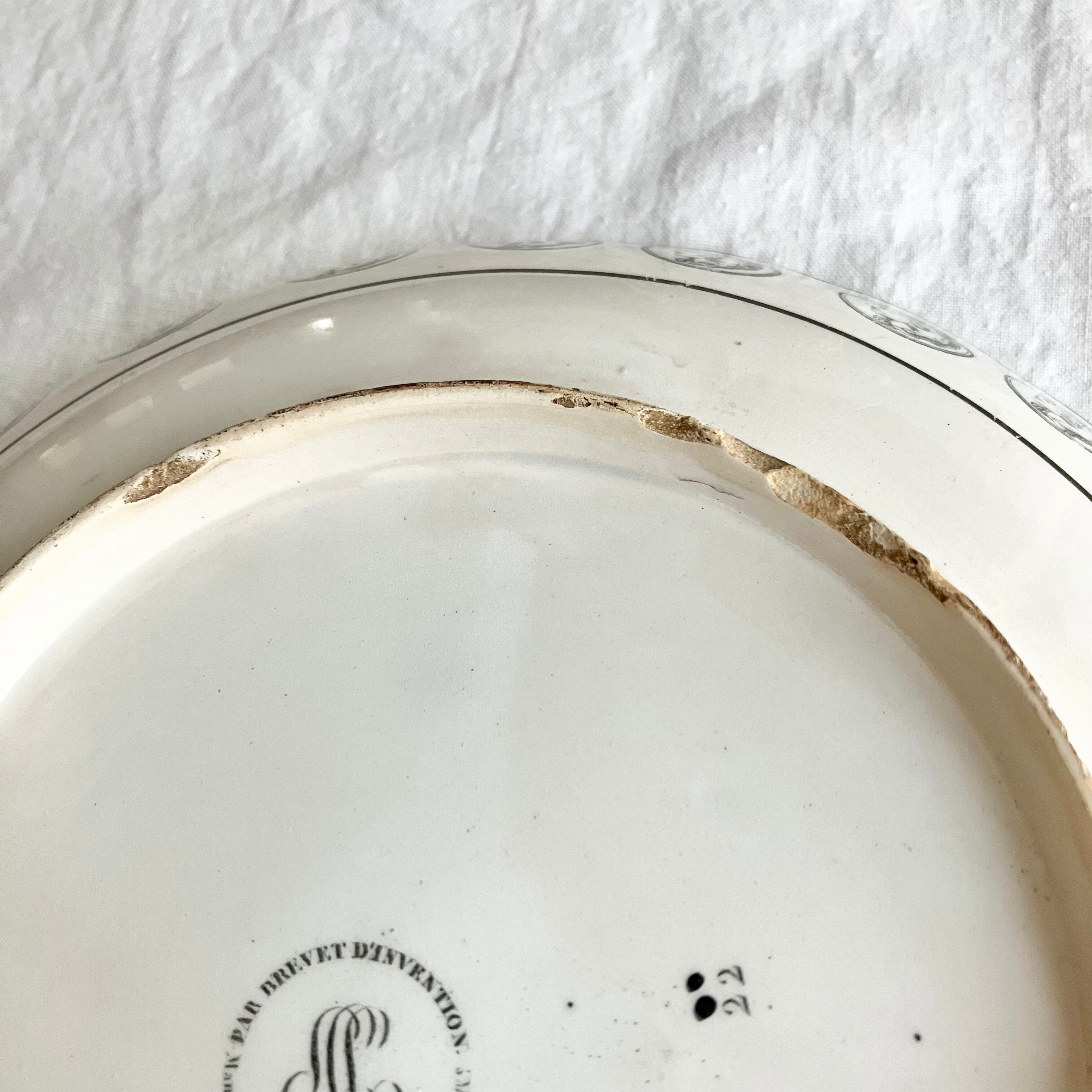 1800年代前半頃のCreilが手掛けたファイアンスフィーヌの珍しい深皿です。