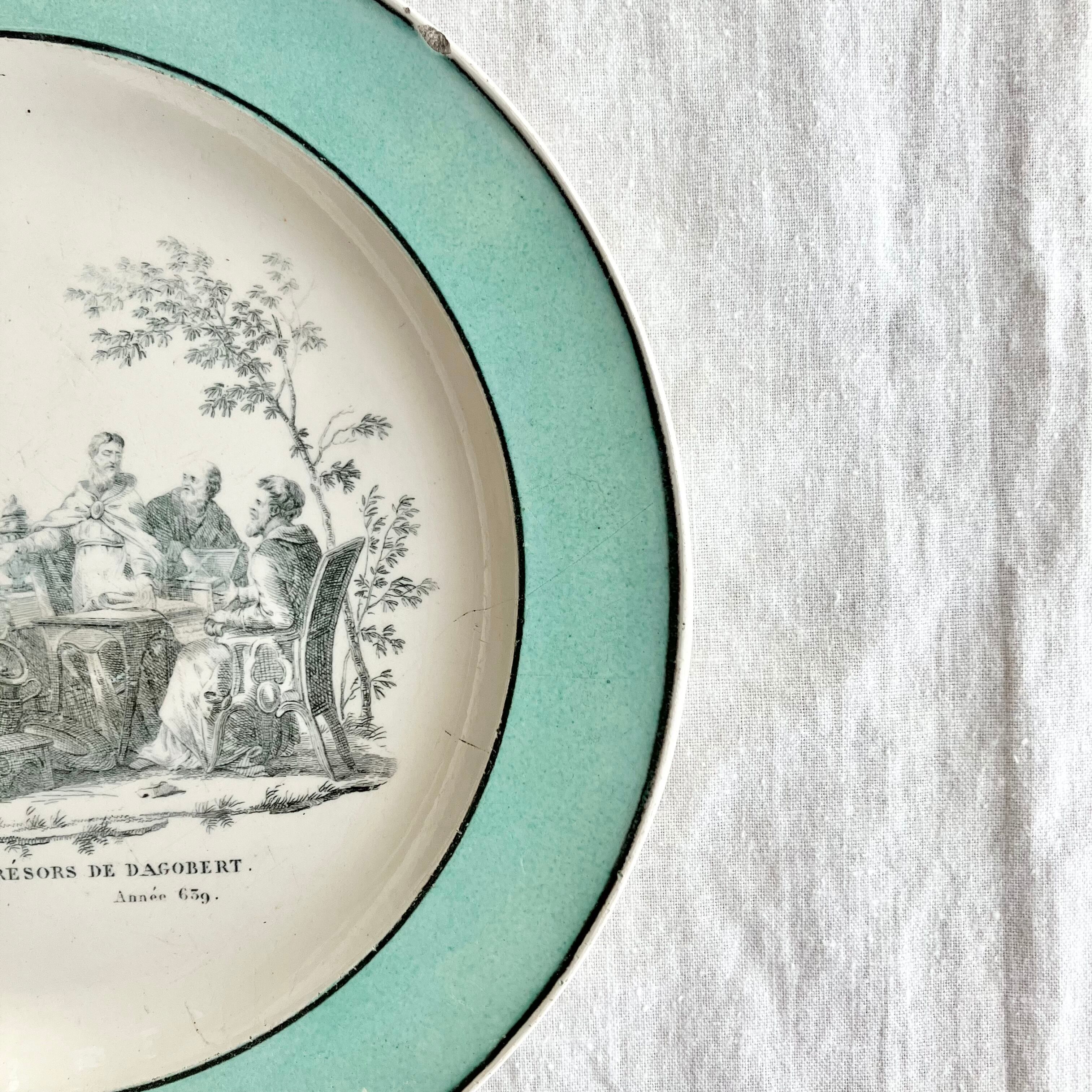 縁はフランスらしいミントブルーとブラックのラインで飾られており、大変美しい一枚です。
