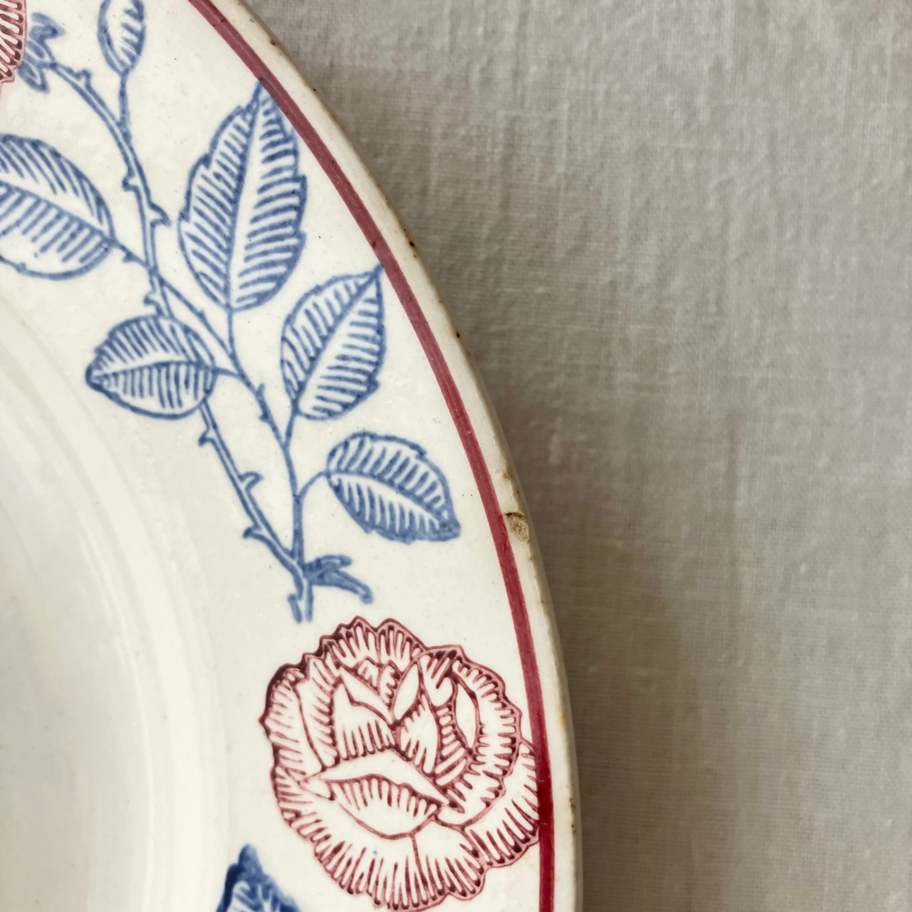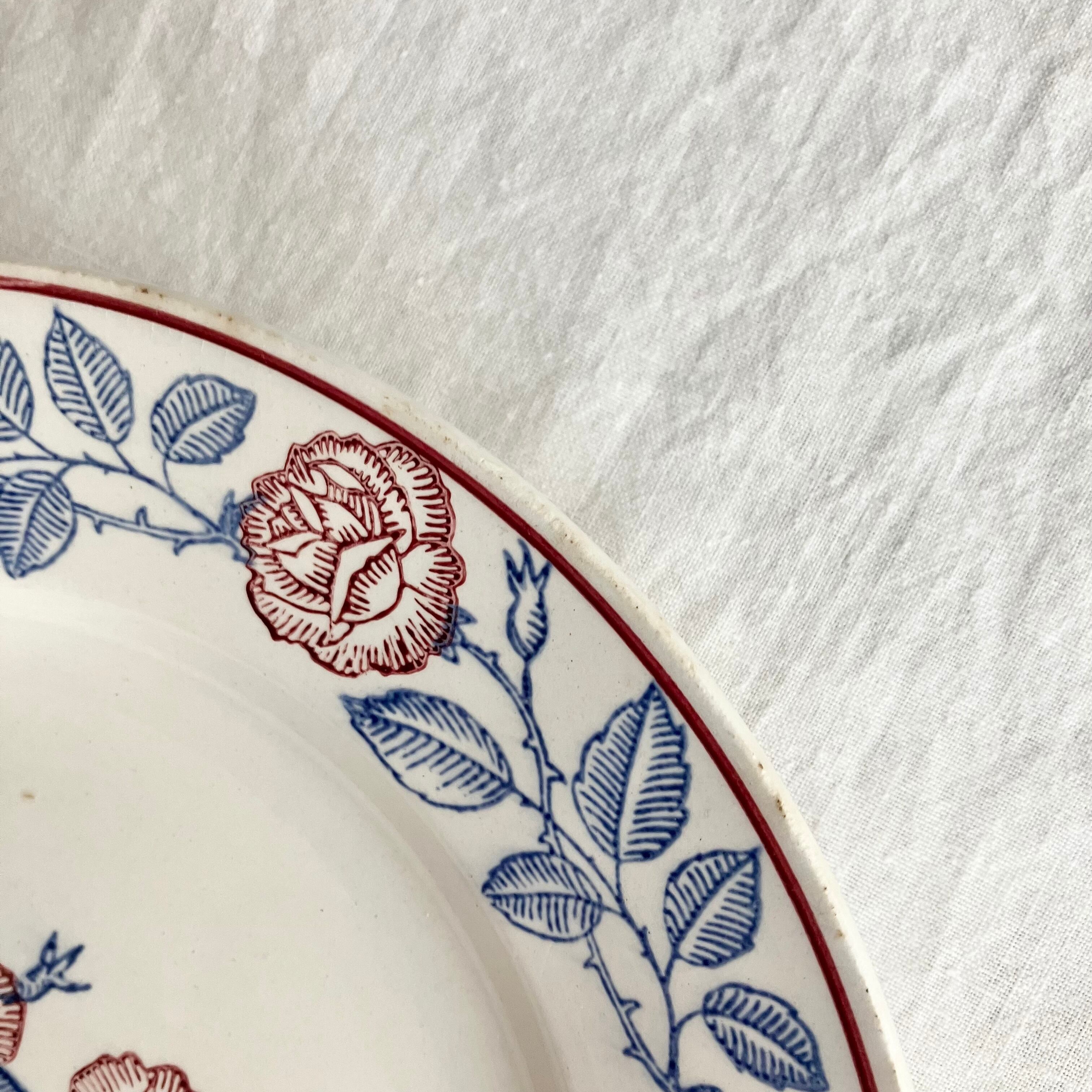 Longwy ブルーと赤いバラのプレート Rosine
