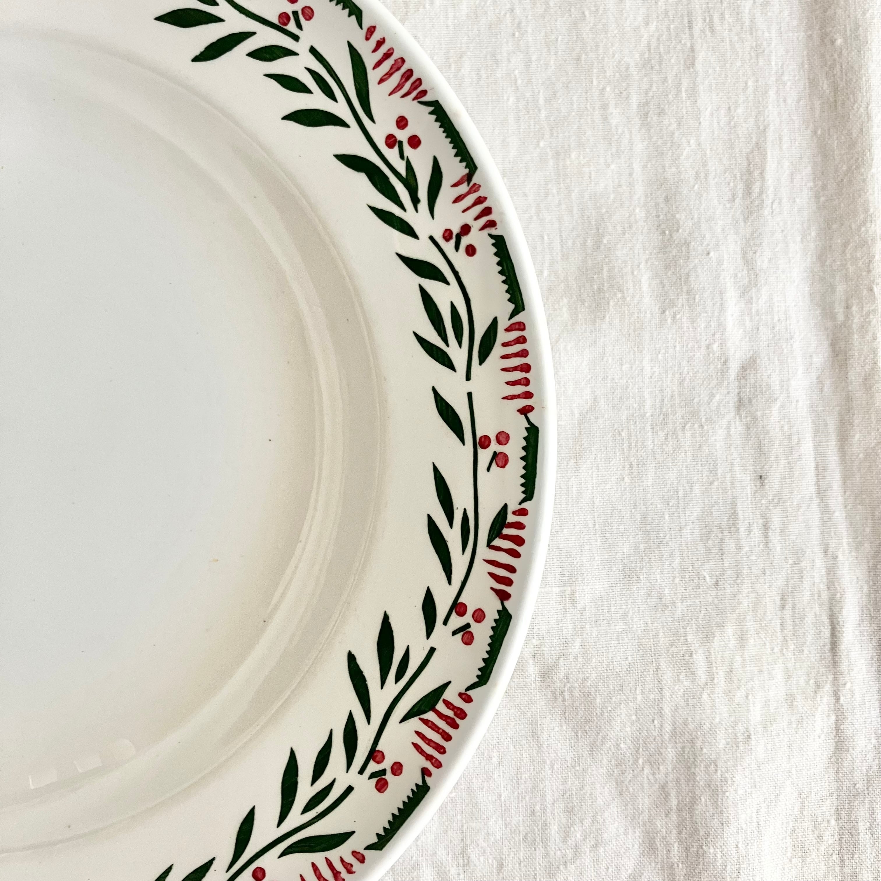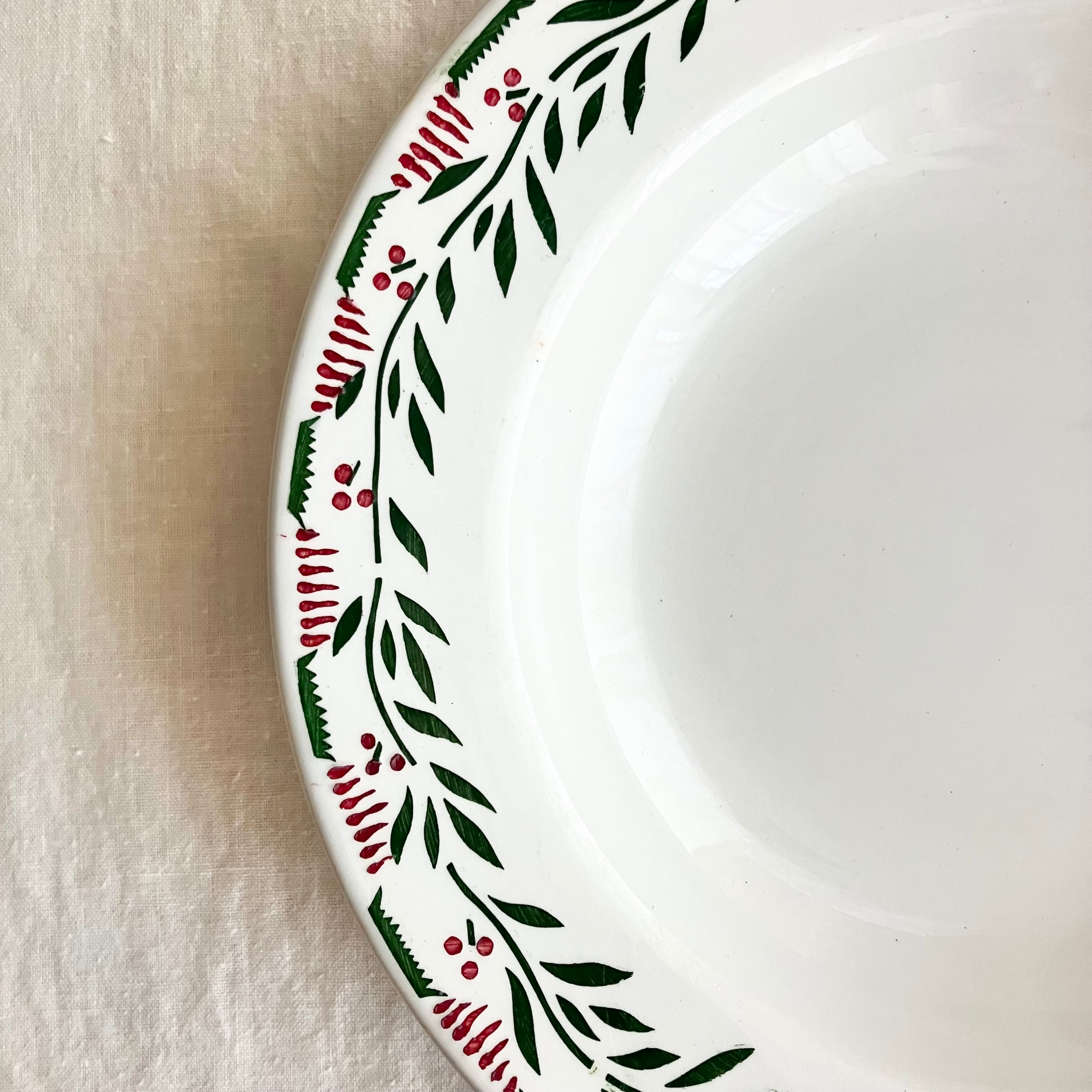 Sarreguemines 赤とグリーンのホリデースーププレート Brevannes