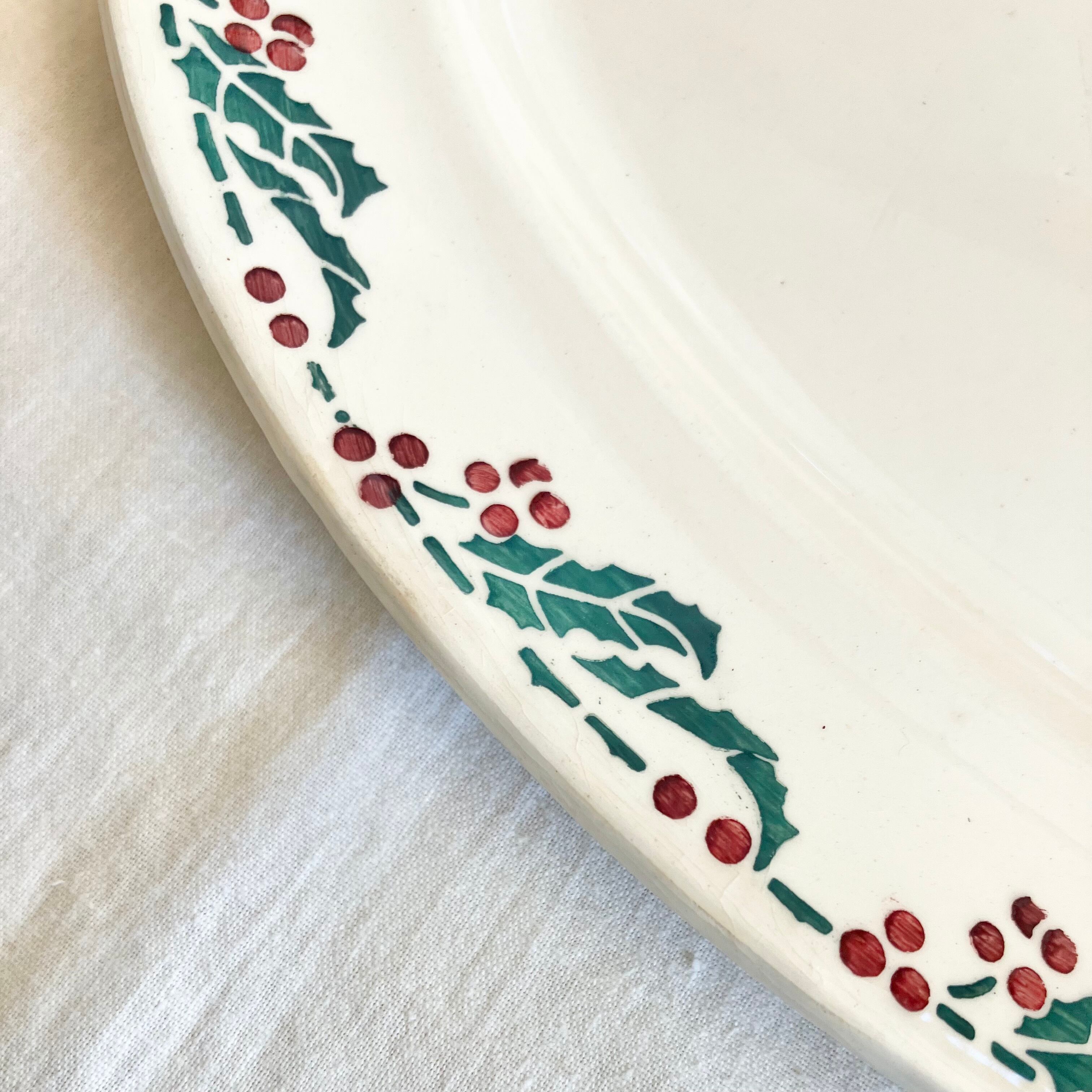 やさしい乳白色に、可愛らしいヒイラギの赤い実がぐるりと描かれている、まさにホリデーシーズンにぴったりな大皿です。