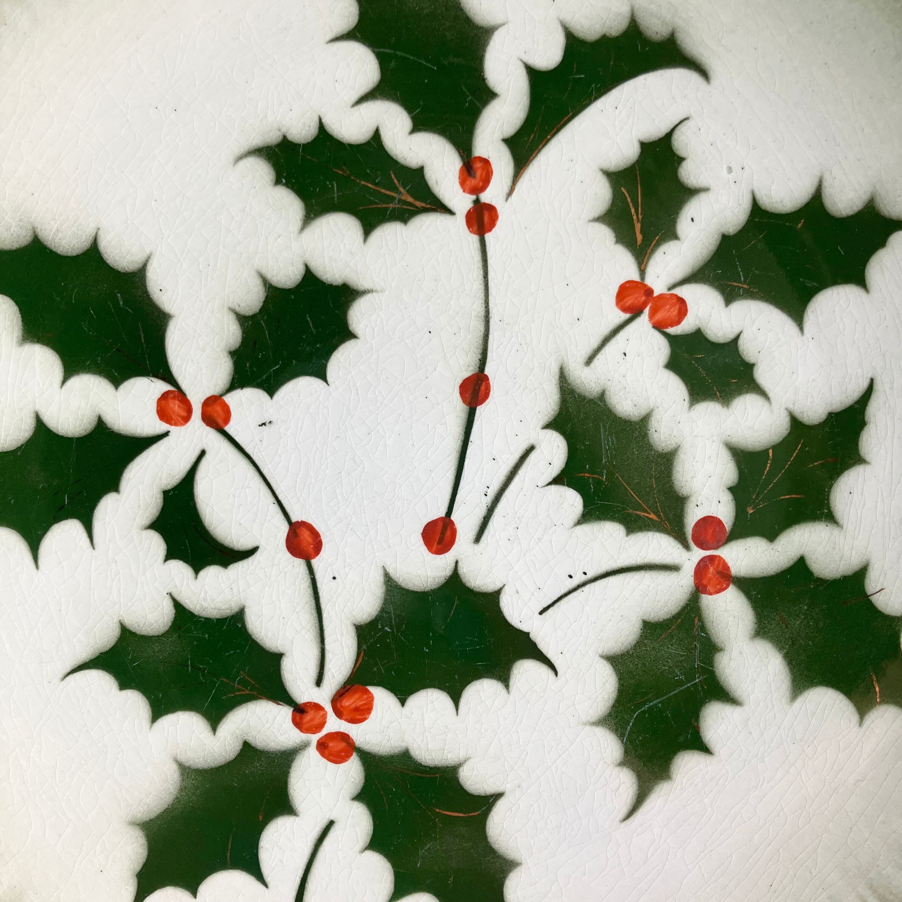 大きく可愛らしい柊の実が描かれ、その周りは美しいシェルのようなレリーフが施されています。
