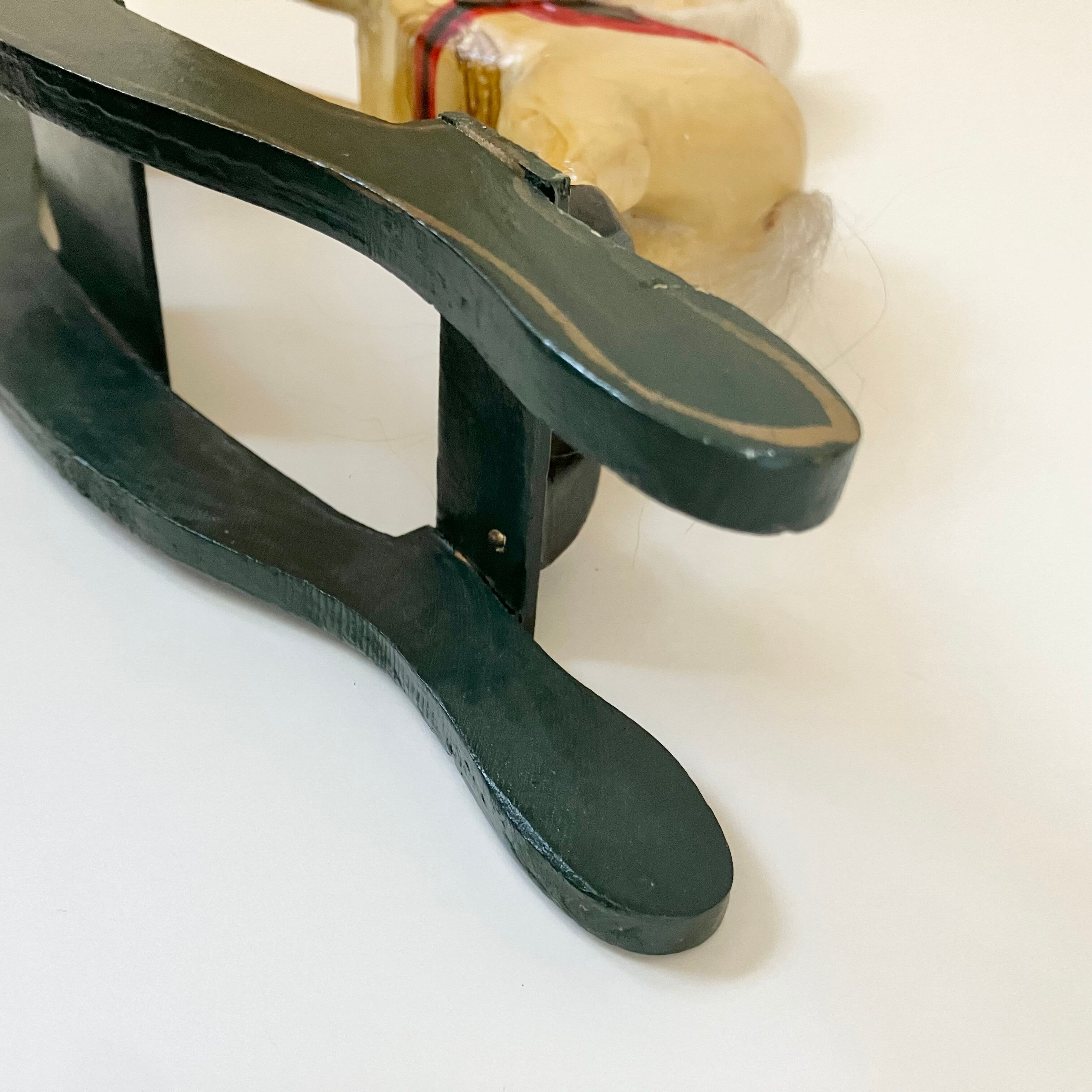 足をかけるところには小さな金具と合皮が使われていたり、尻尾と立て髪にはふさふさの毛がつけられていたりと、とても丁寧な造りです。