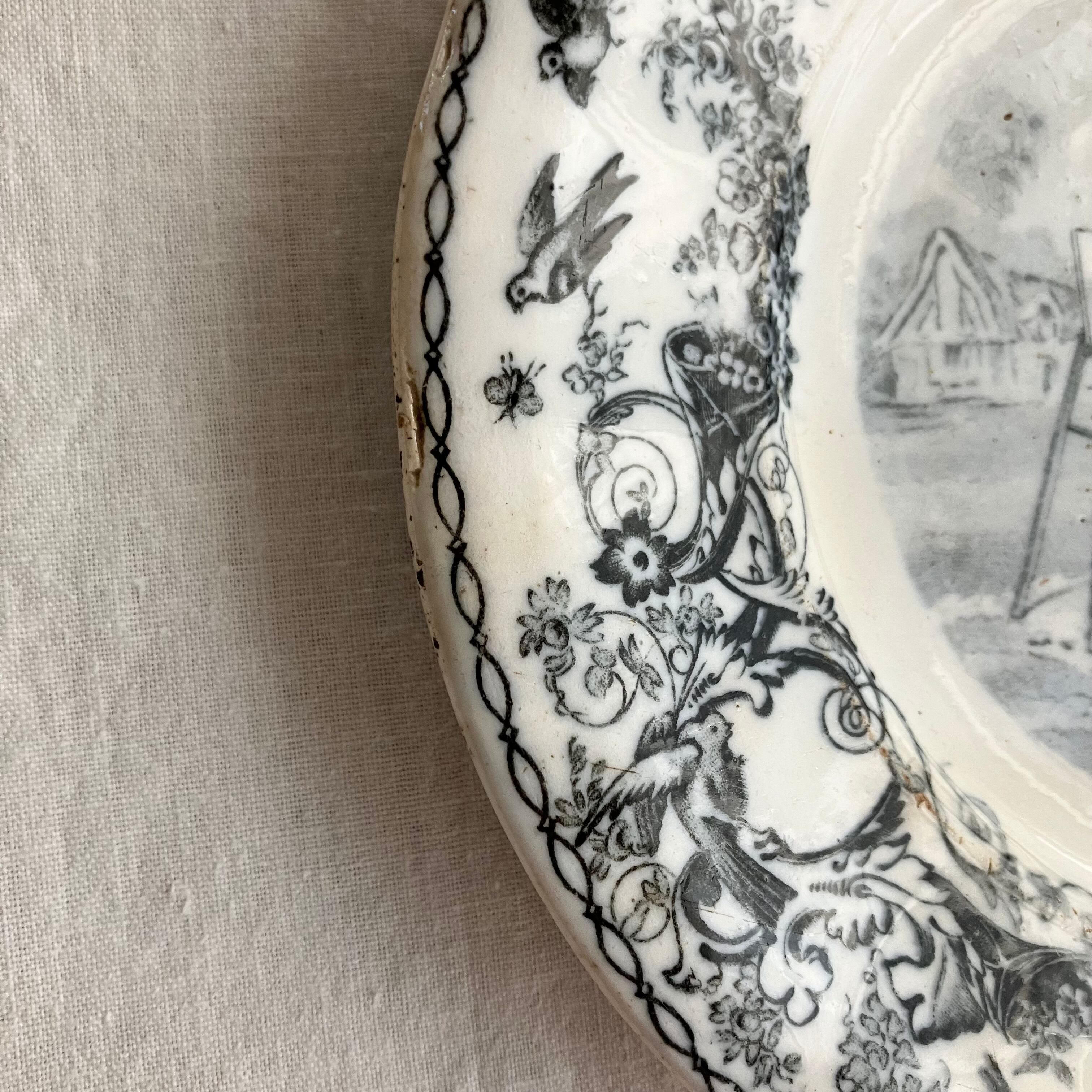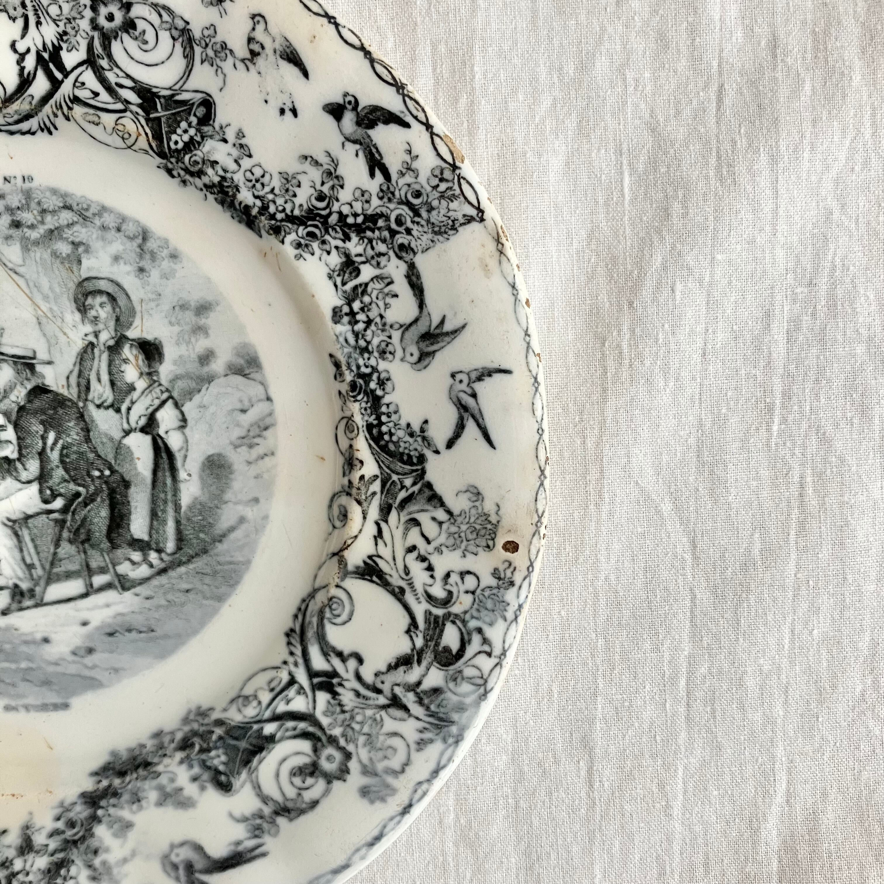 1800年代後半〜1900年代初頭頃、T.M. & Cie Grignyが手掛けたグリザイユプレート。小規模な窯だったため、比較的数が少なく、希少な一枚です。