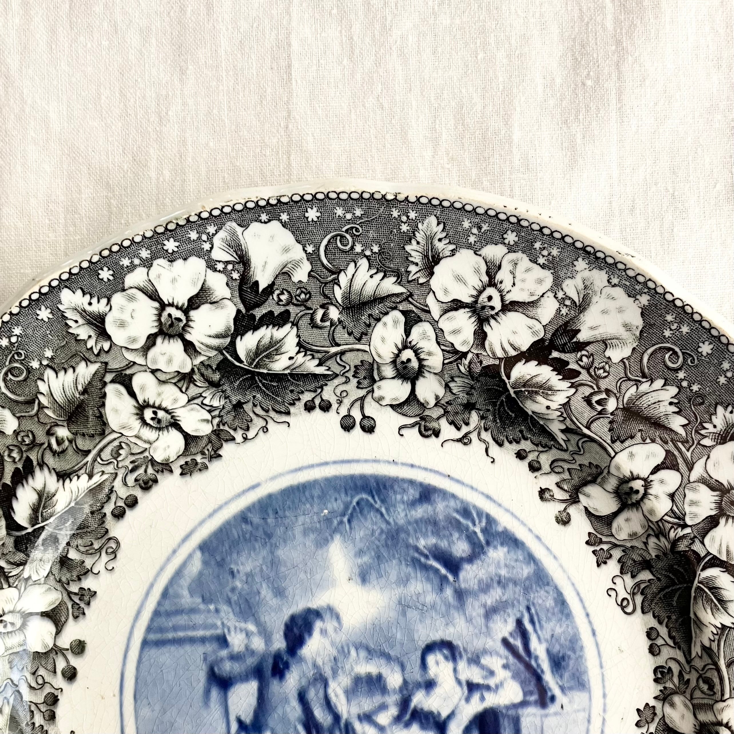 1800年代中〜後期頃、David Johnston/Vieillard & Cie Bordeaux が手掛けた、なかなか珍しいタイプのグリザイユプレートです。
