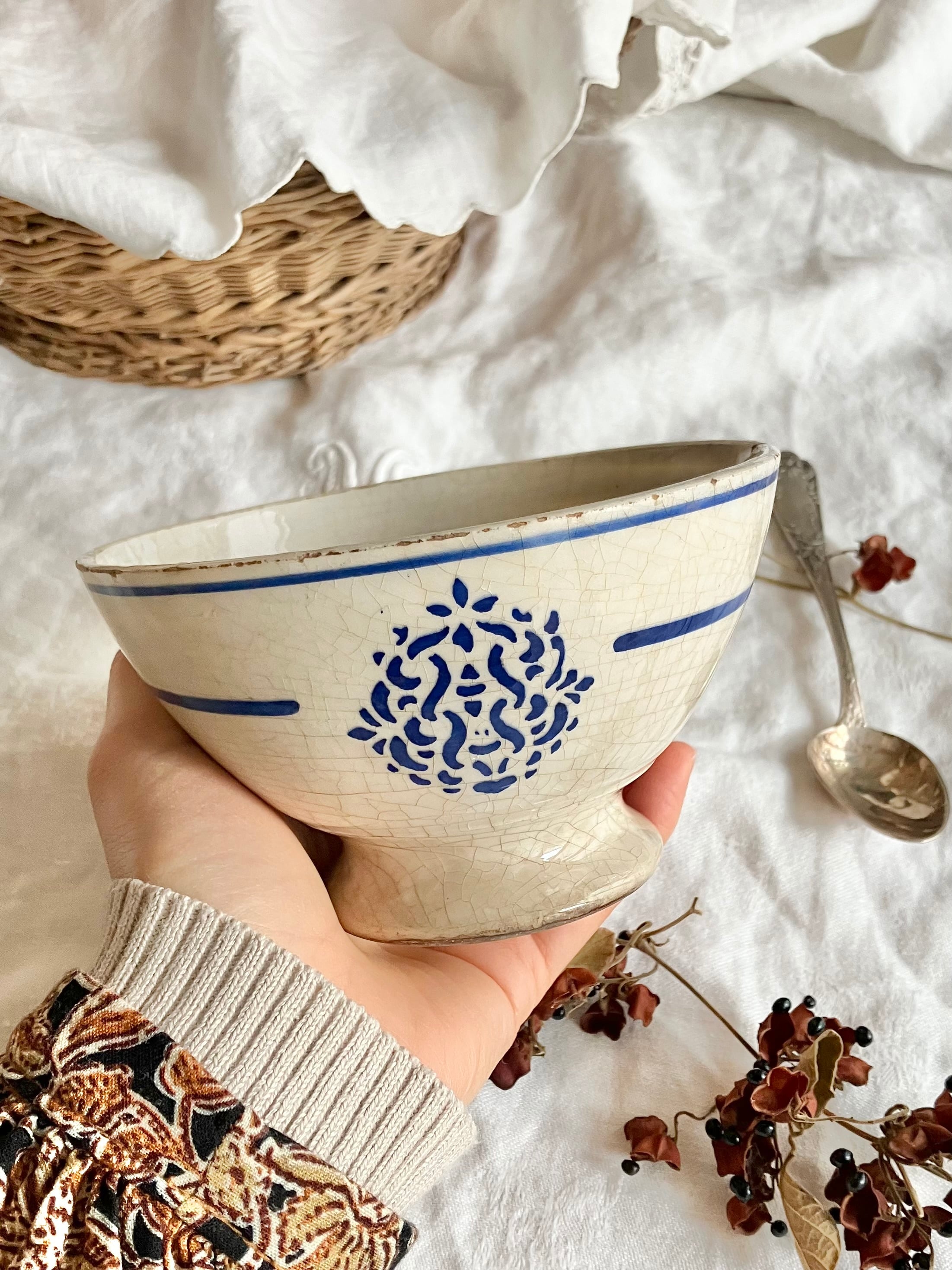 Luneville しっとりと枯れたブルーラインのカフェオレボウル