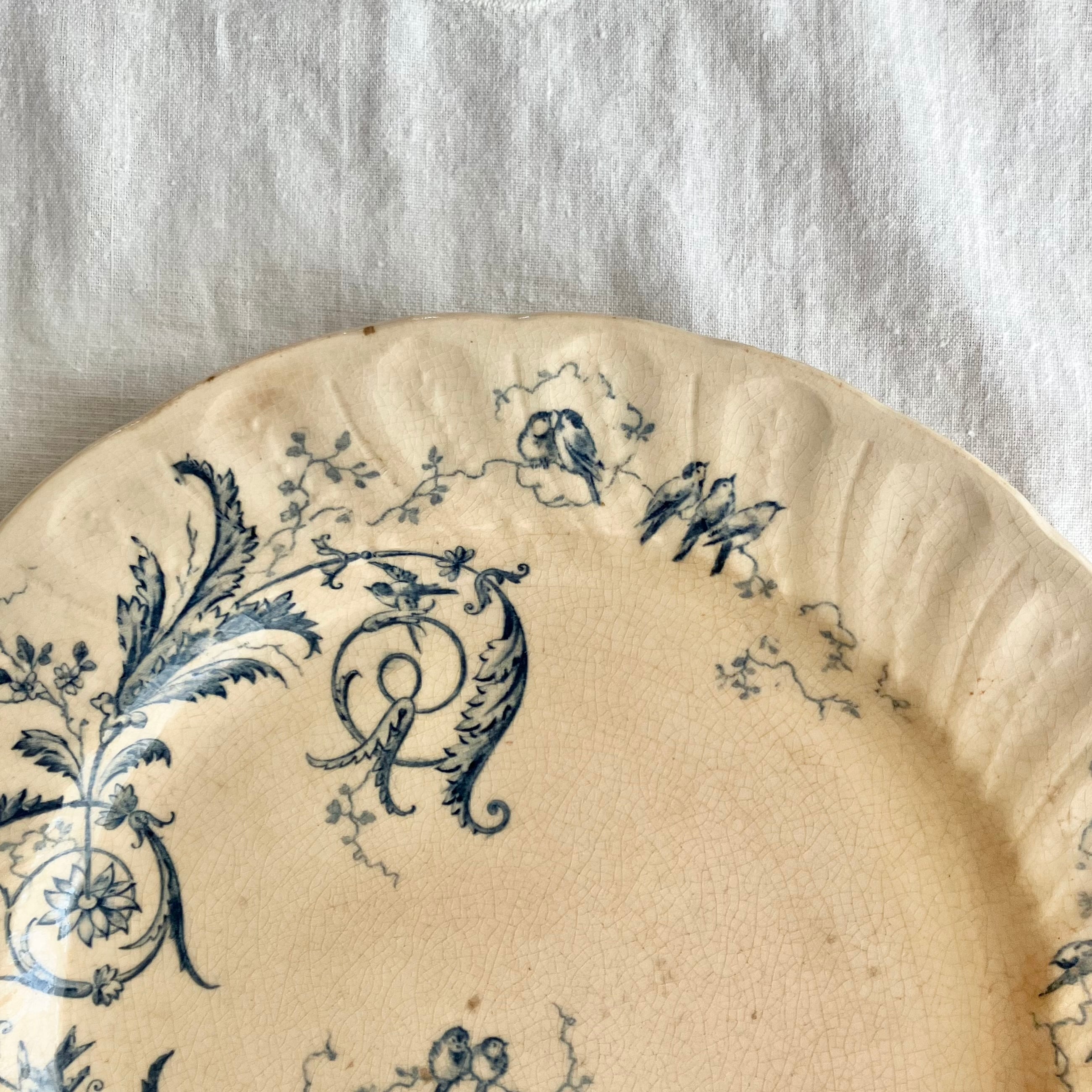 Gien 完璧に枯れた小鳥とロカイユのレリーフプレート Rinceaux