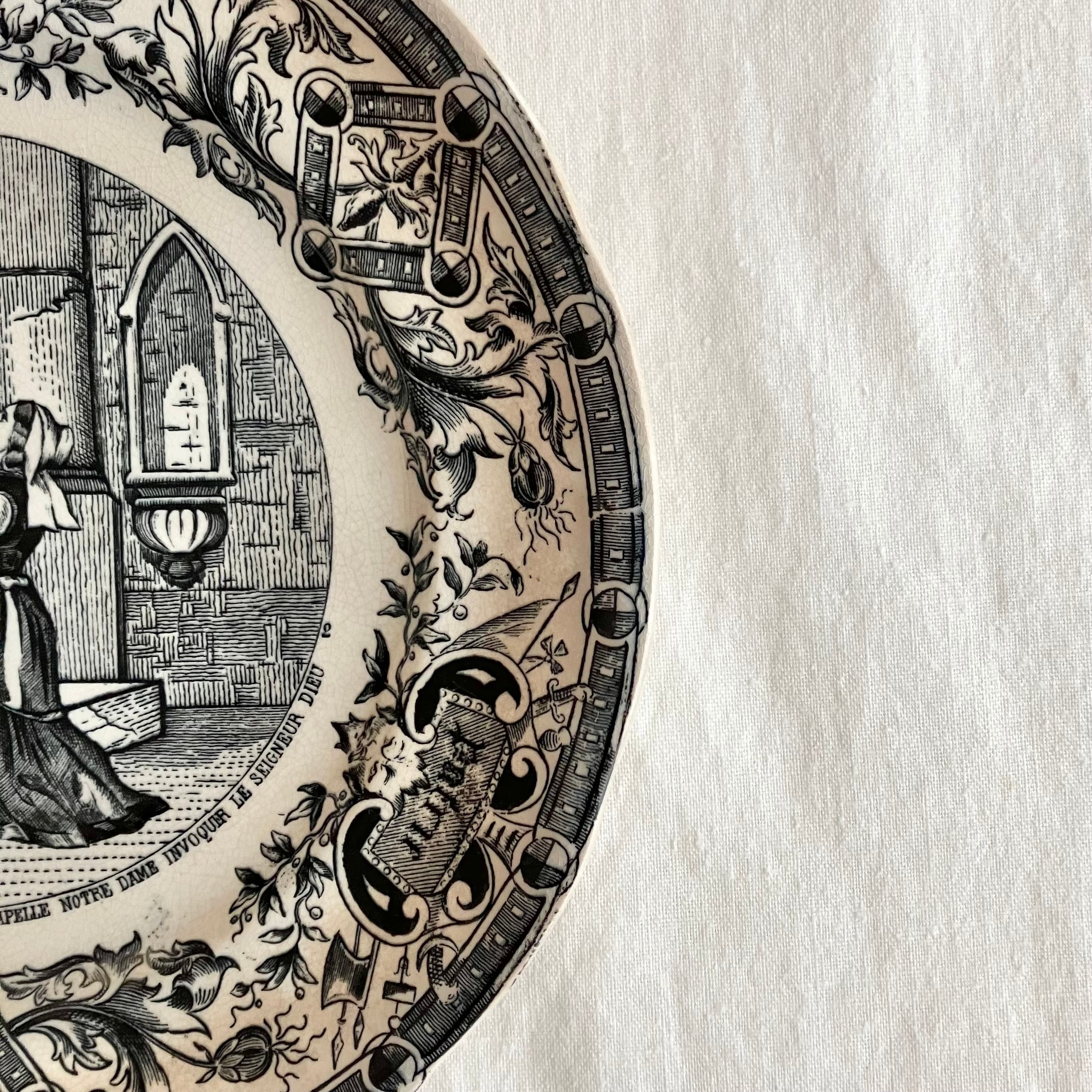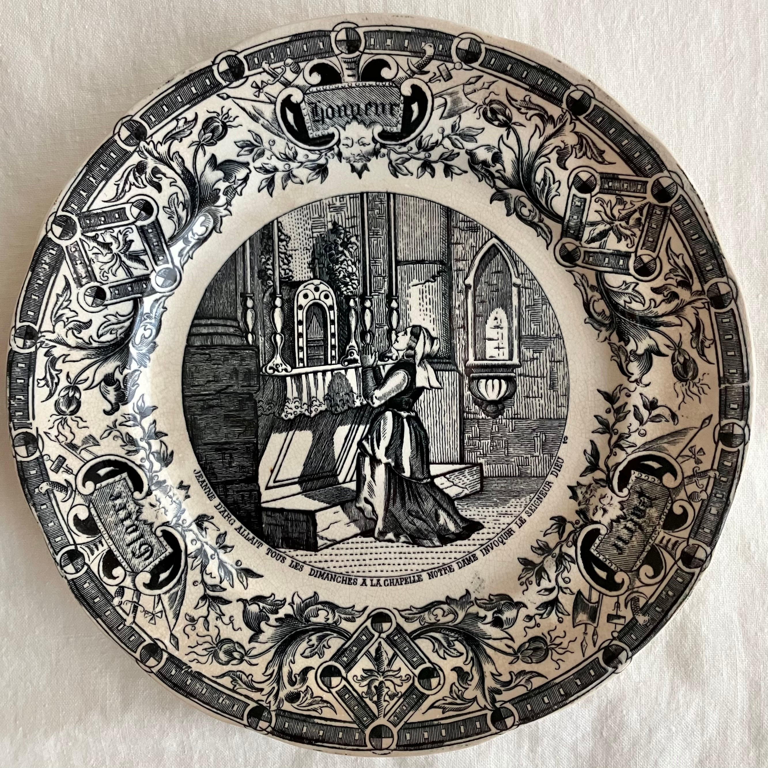 Sarreguemines 祈るジャンヌ・ダルクのグリザイユプレート