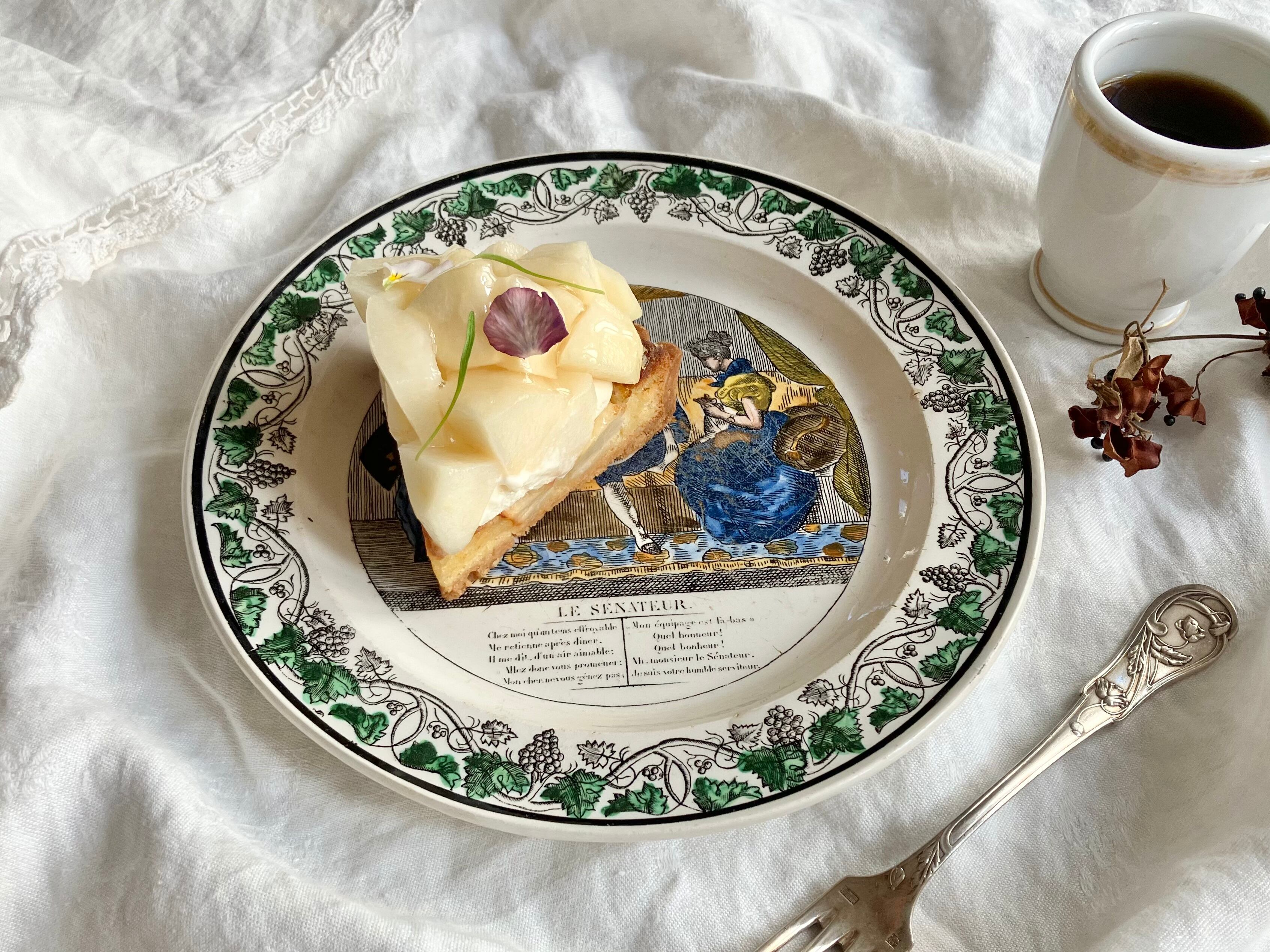 1800年代前半頃LL&T Montereauが手掛けたファイアンスフイーヌ。多色のグリザイユプレートです。