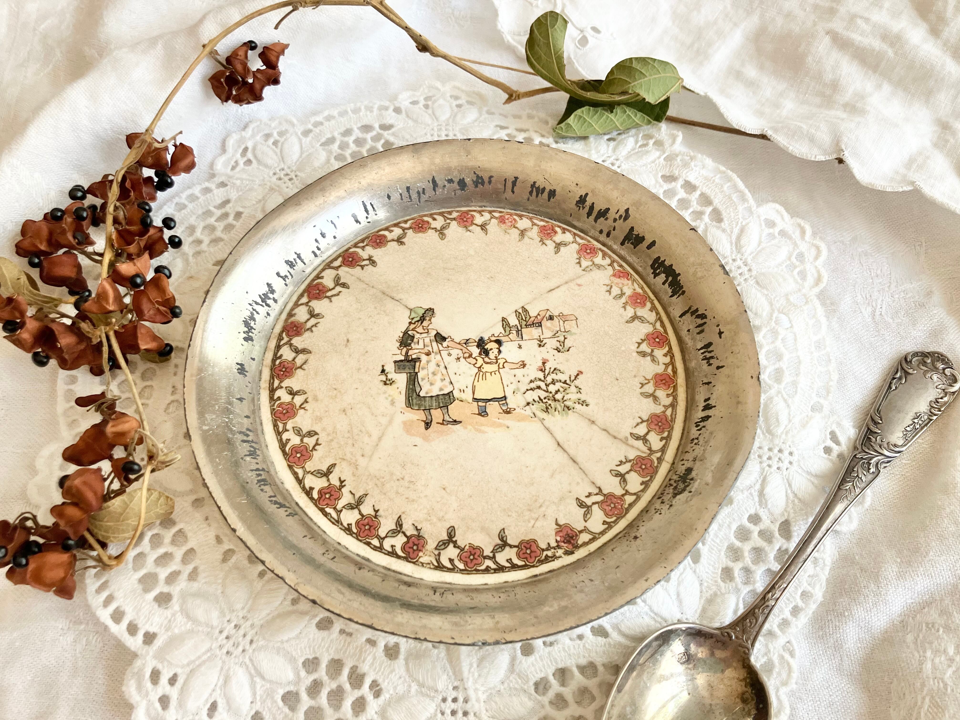 Sarreguemines 可愛い女の子たちのお散歩シルバーリムプレート Enfants Richard
