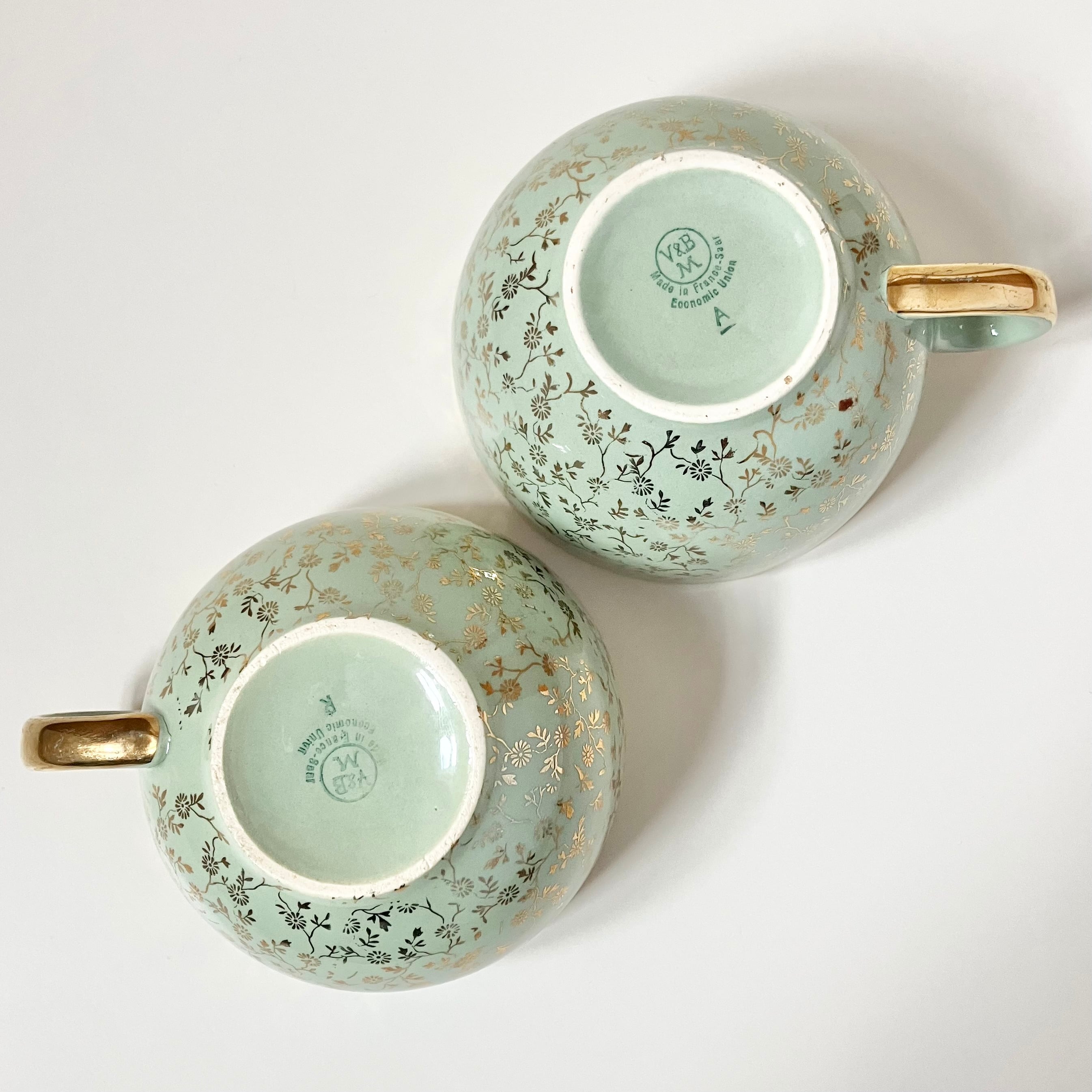 ミントグリーンにゴールドの可愛らしい小花が全面に散りばめられていて、それぞれに”Toi”『あなた』と”Moi”『わたし』とフランス語で記されています。