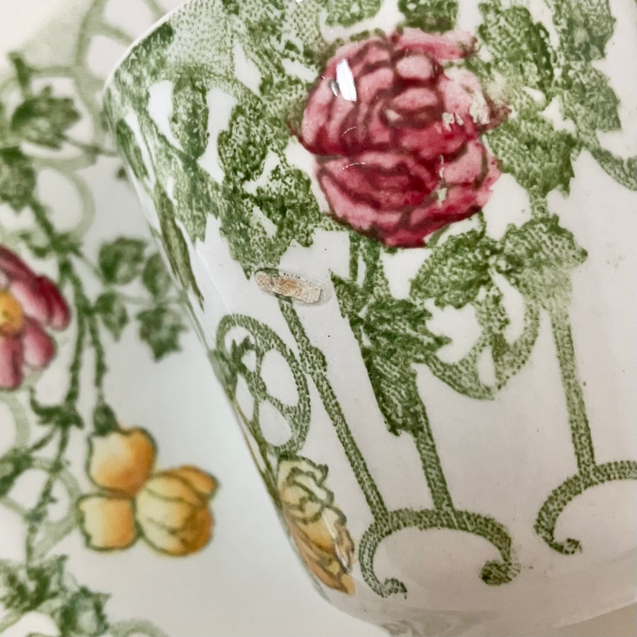 Sarreguemines 美しいバラのカップ&ソーサー Véranda