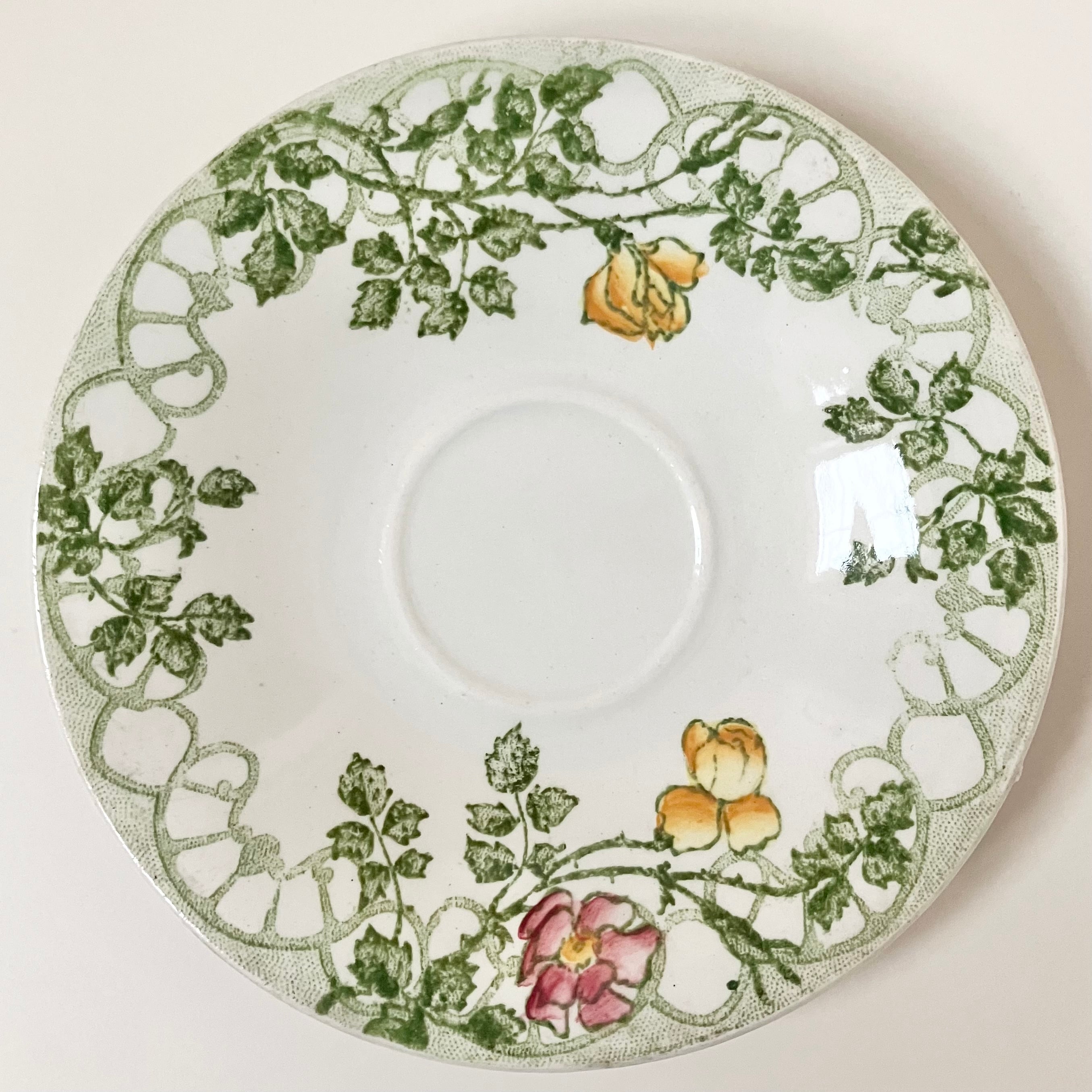 Sarreguemines 美しいバラのカップ&ソーサー Véranda