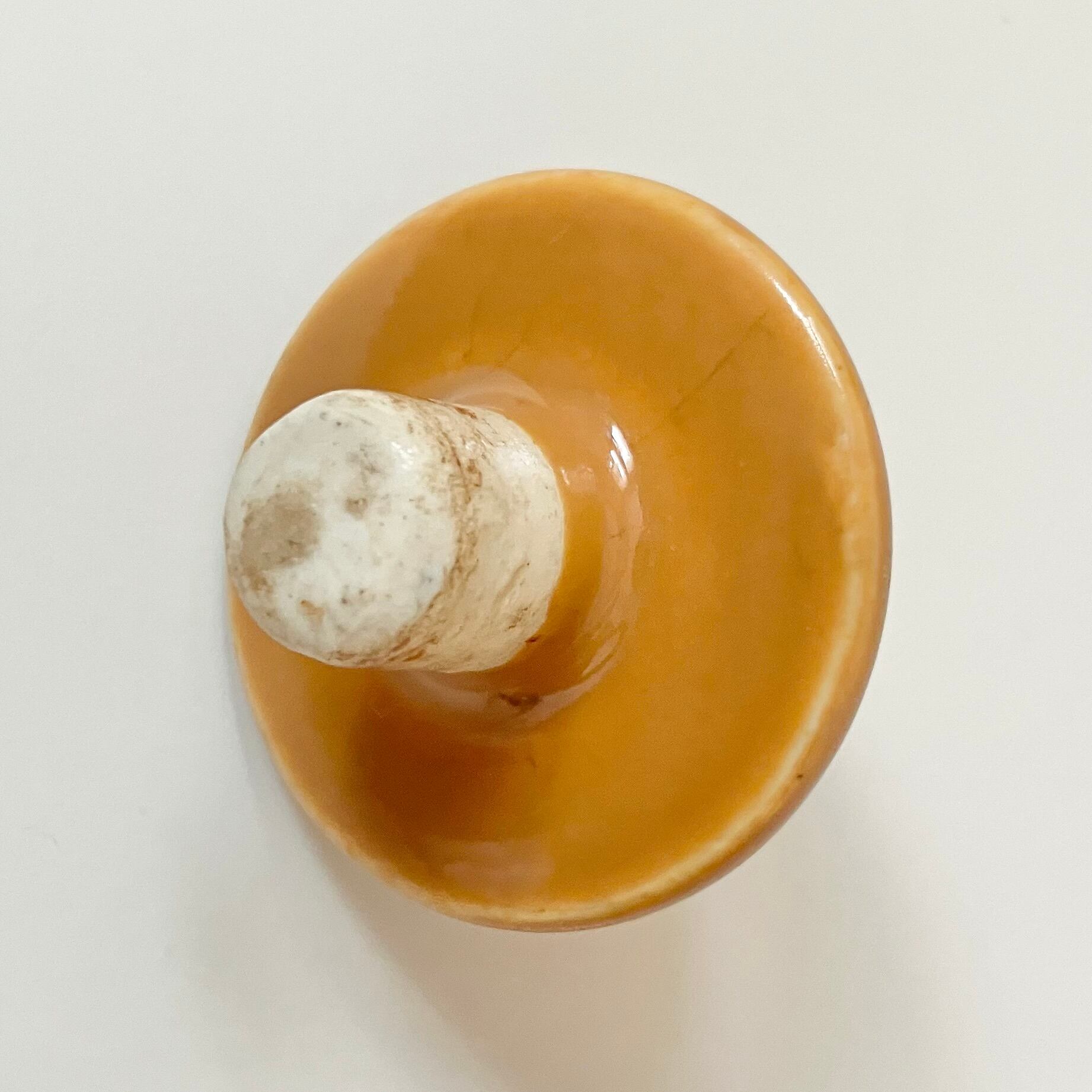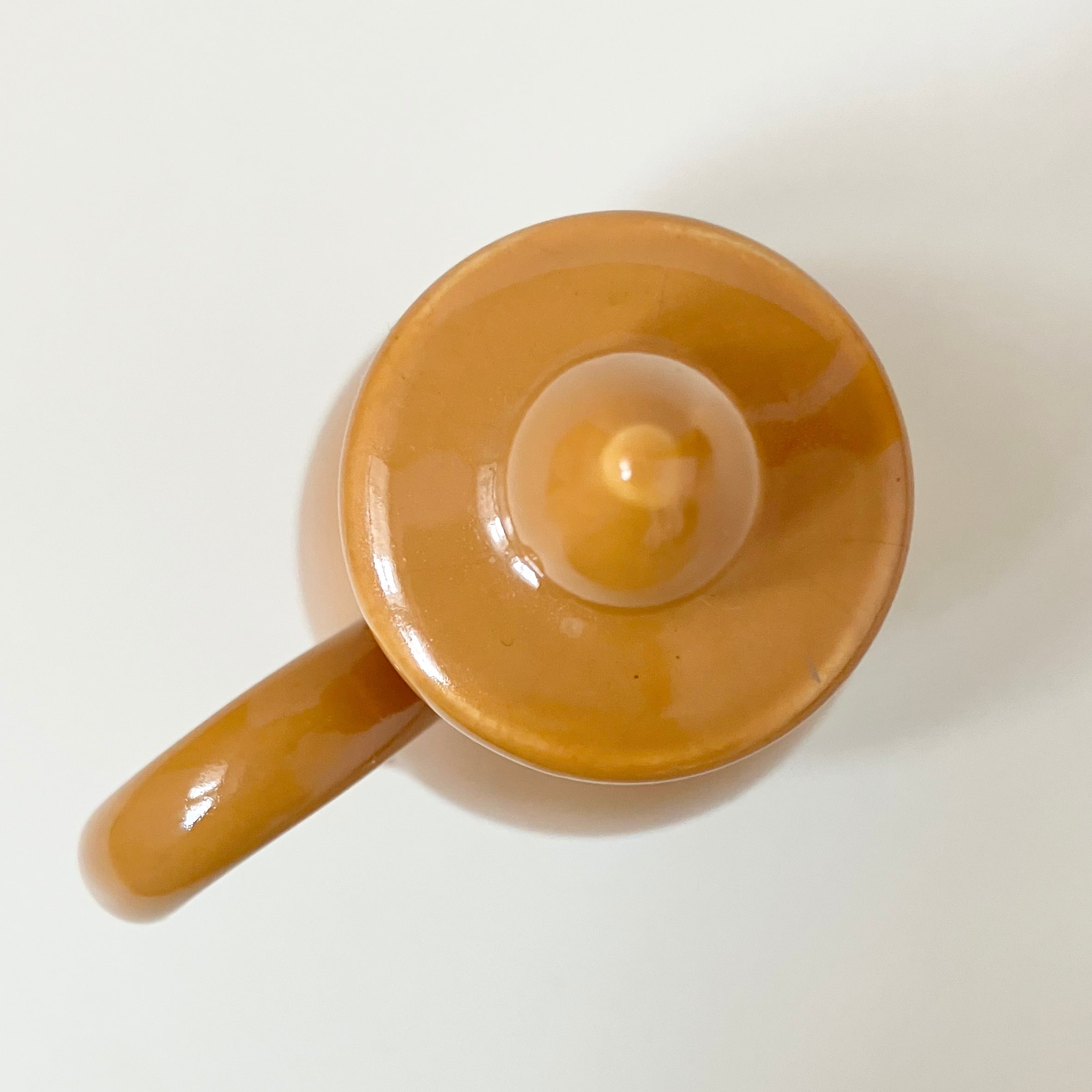 Orleansオルレアン製法で造られたビネガーを入れていた陶器のポットで、飴色が美しく、ぽってり艶やか。ちょこんと乗った摘み部分やくびれのあるボディに可愛らしさも感じます。