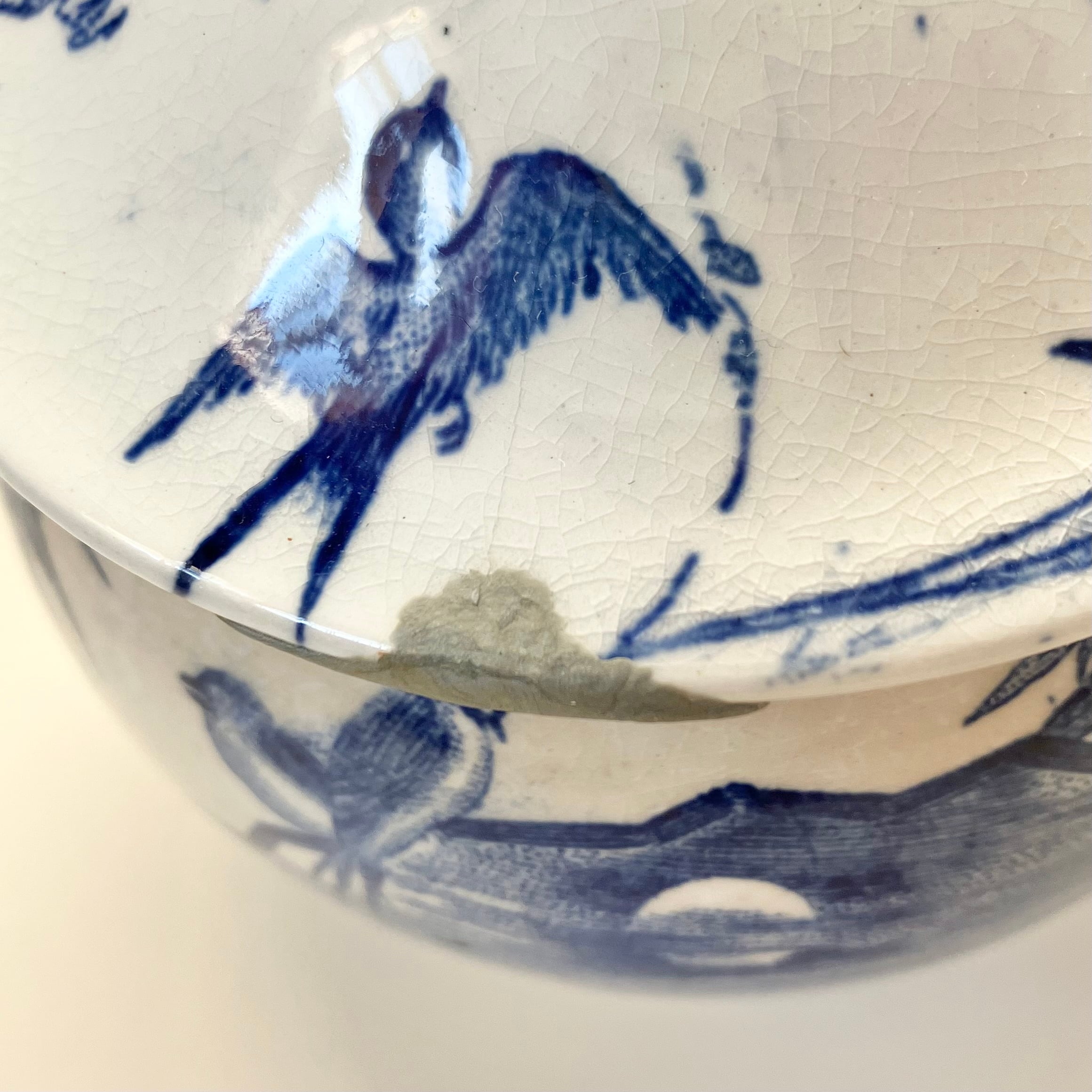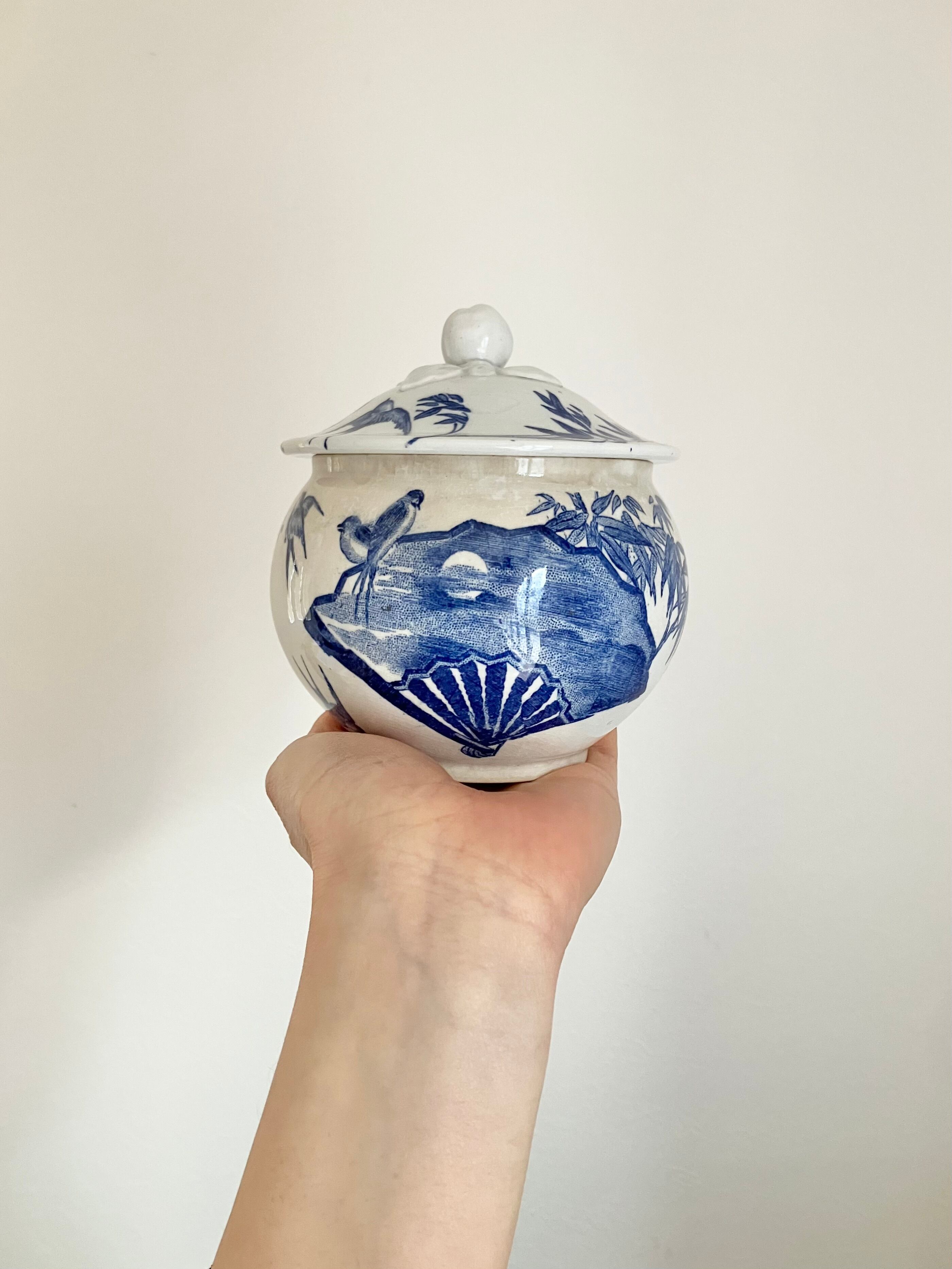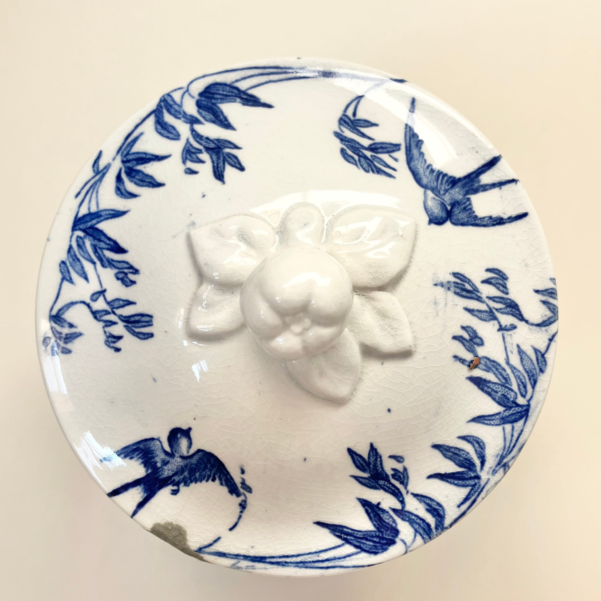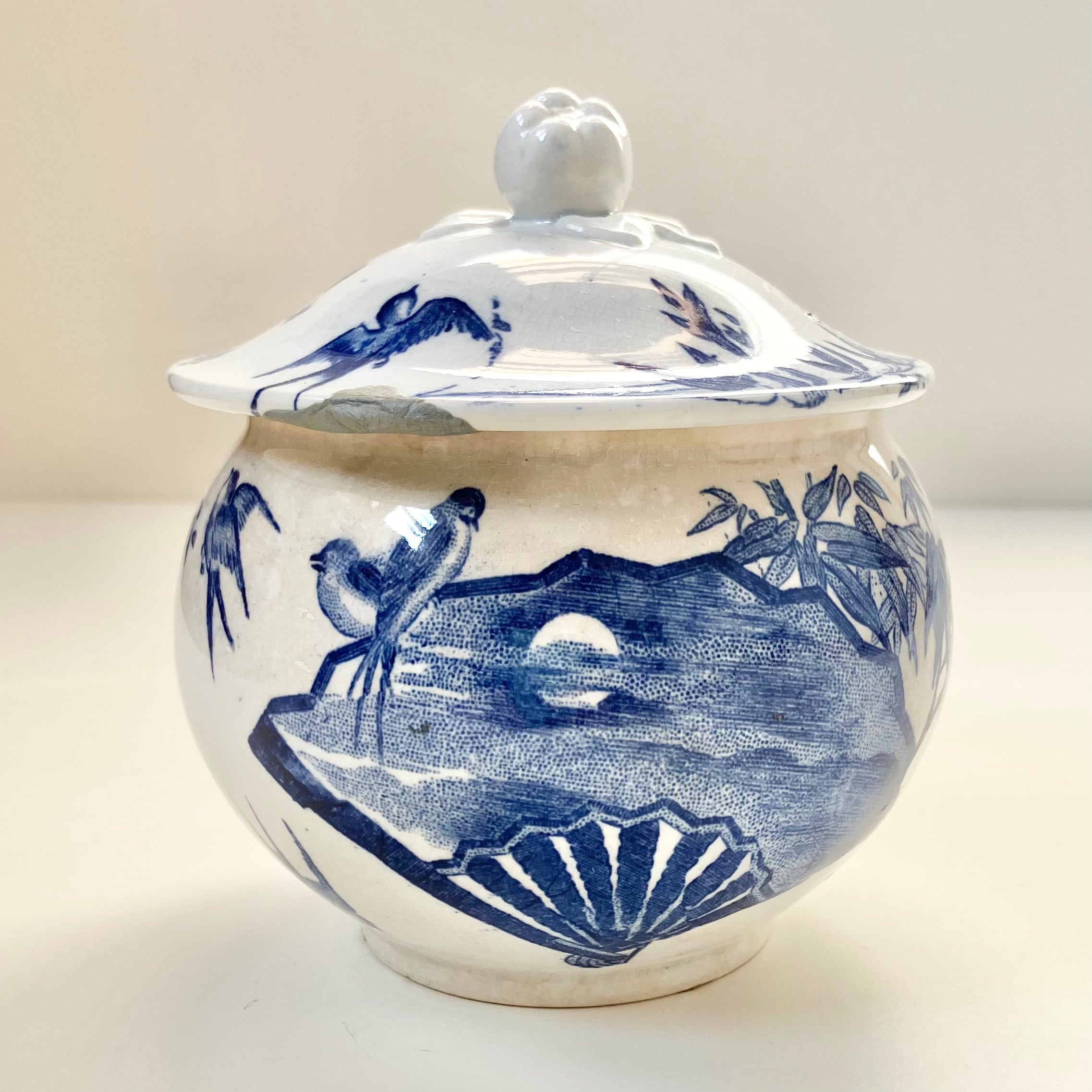 1800年代末頃のGien、Hirondellesシリーズのシュガーポットです。