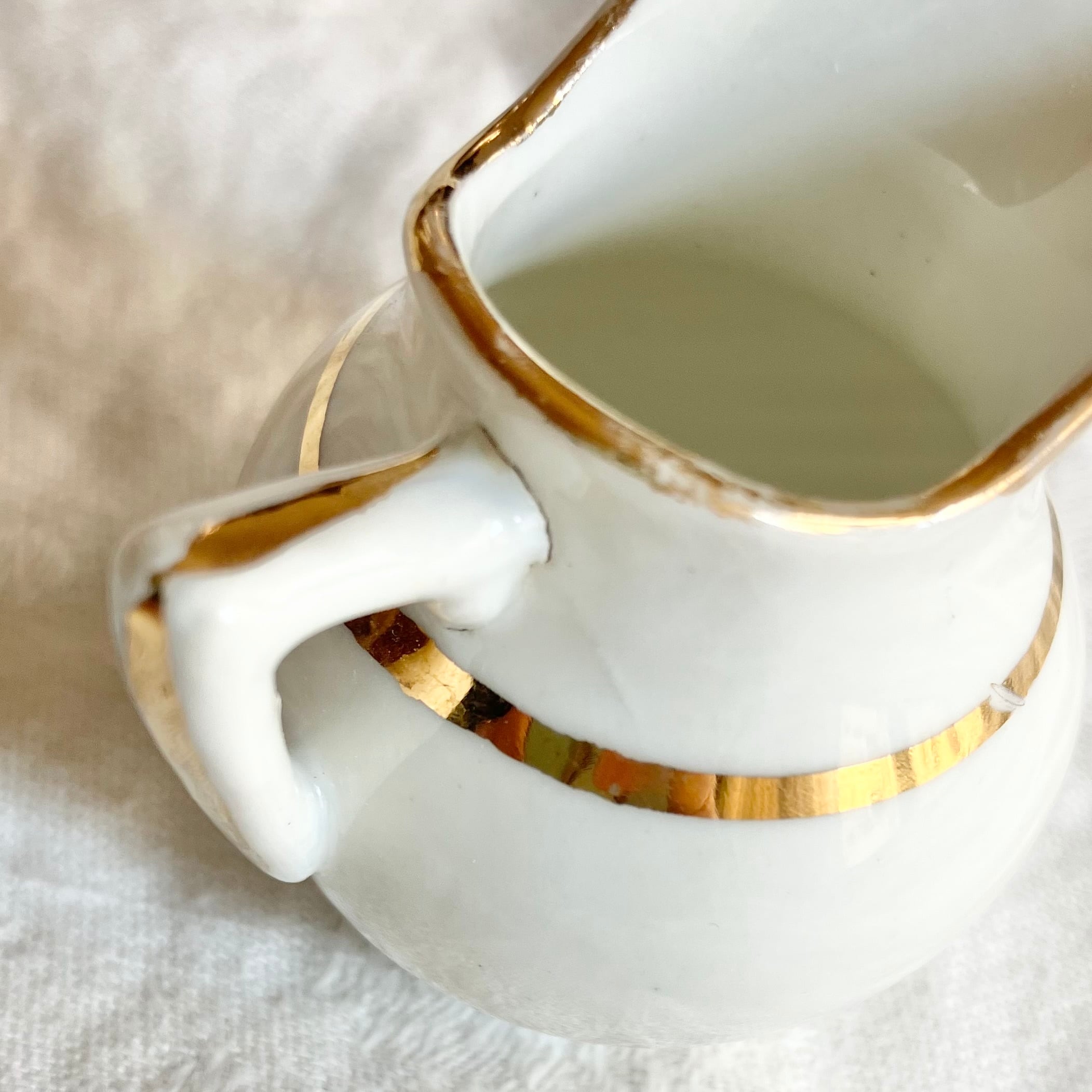 美しいゴールドで飾られた、ぽってりとしたフォルムが愛らしく、お庭の小さな花たちを飾るのにぴったりです。
