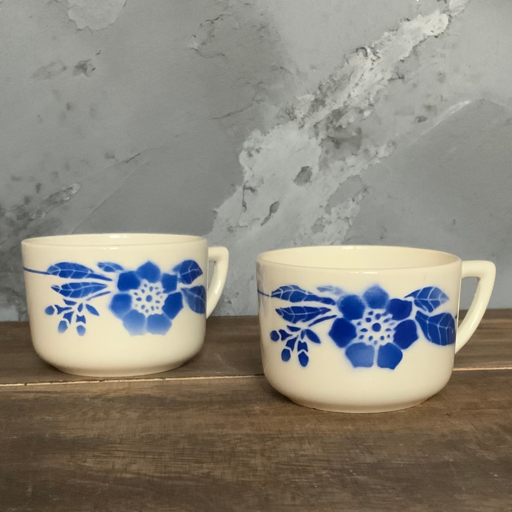 Digoin Sarregueminesの可愛らしい白とブルーの小さなカップ2つセットです。