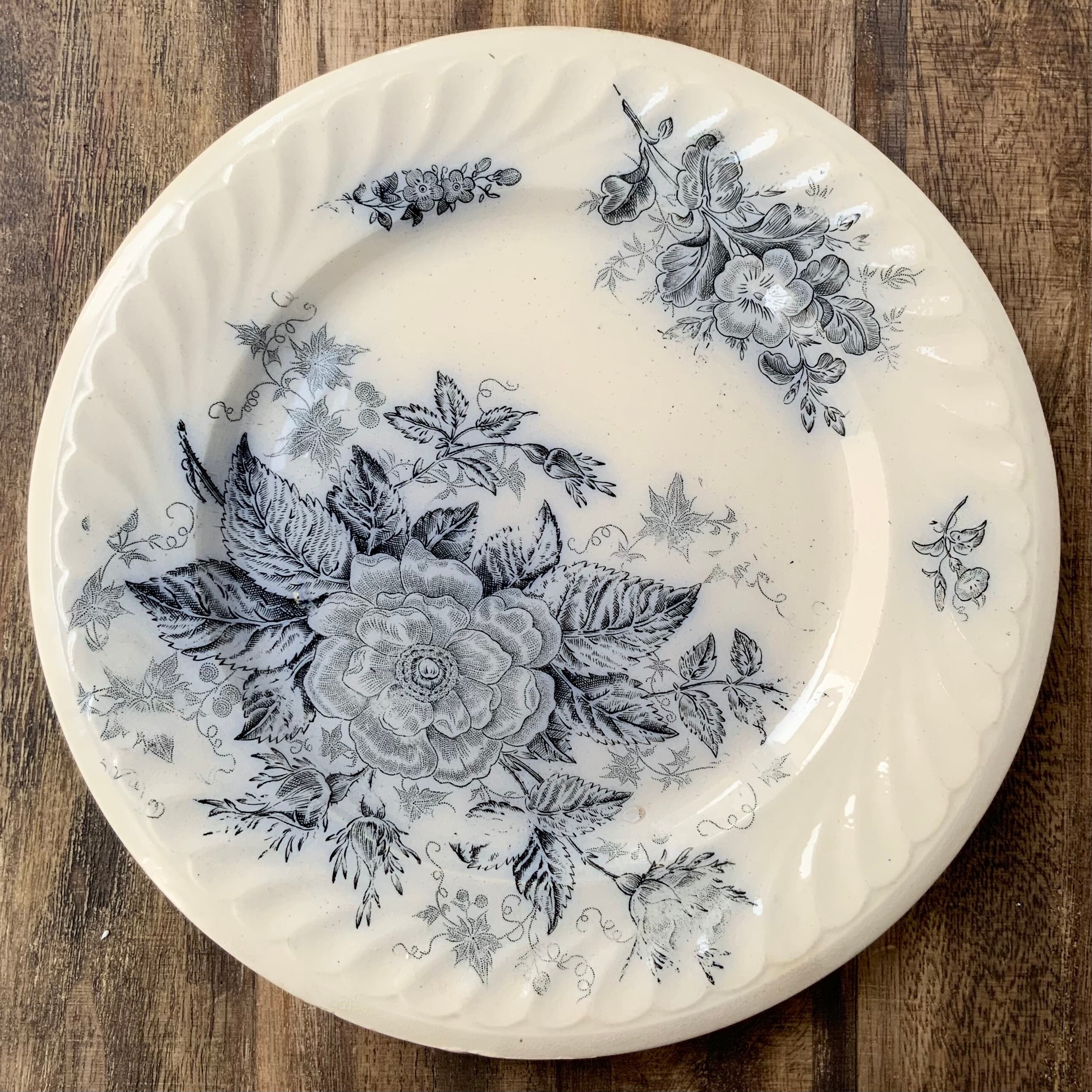 ゴージャスな薔薇がブルーがかったブラックで繊細に描かれています。