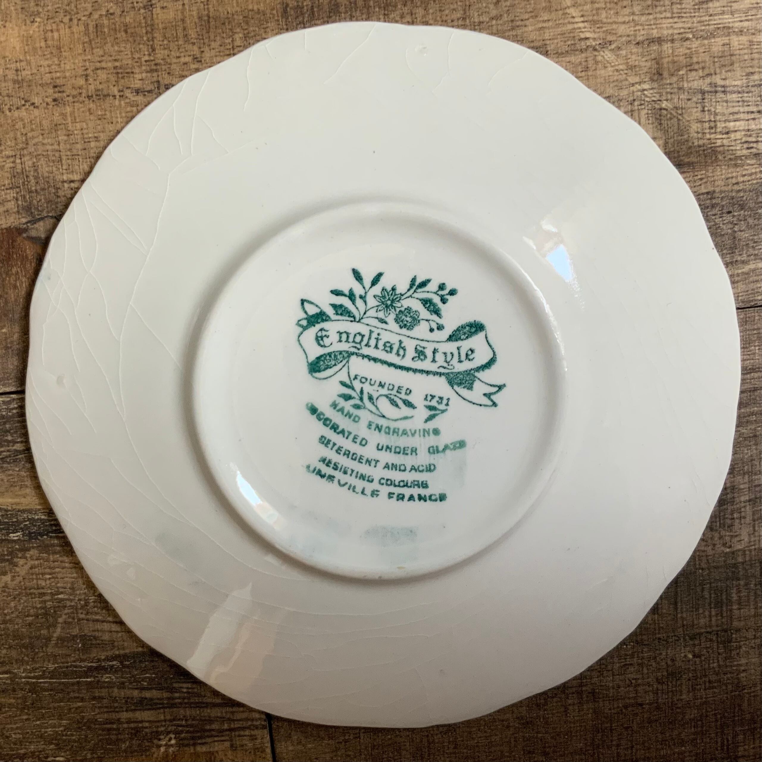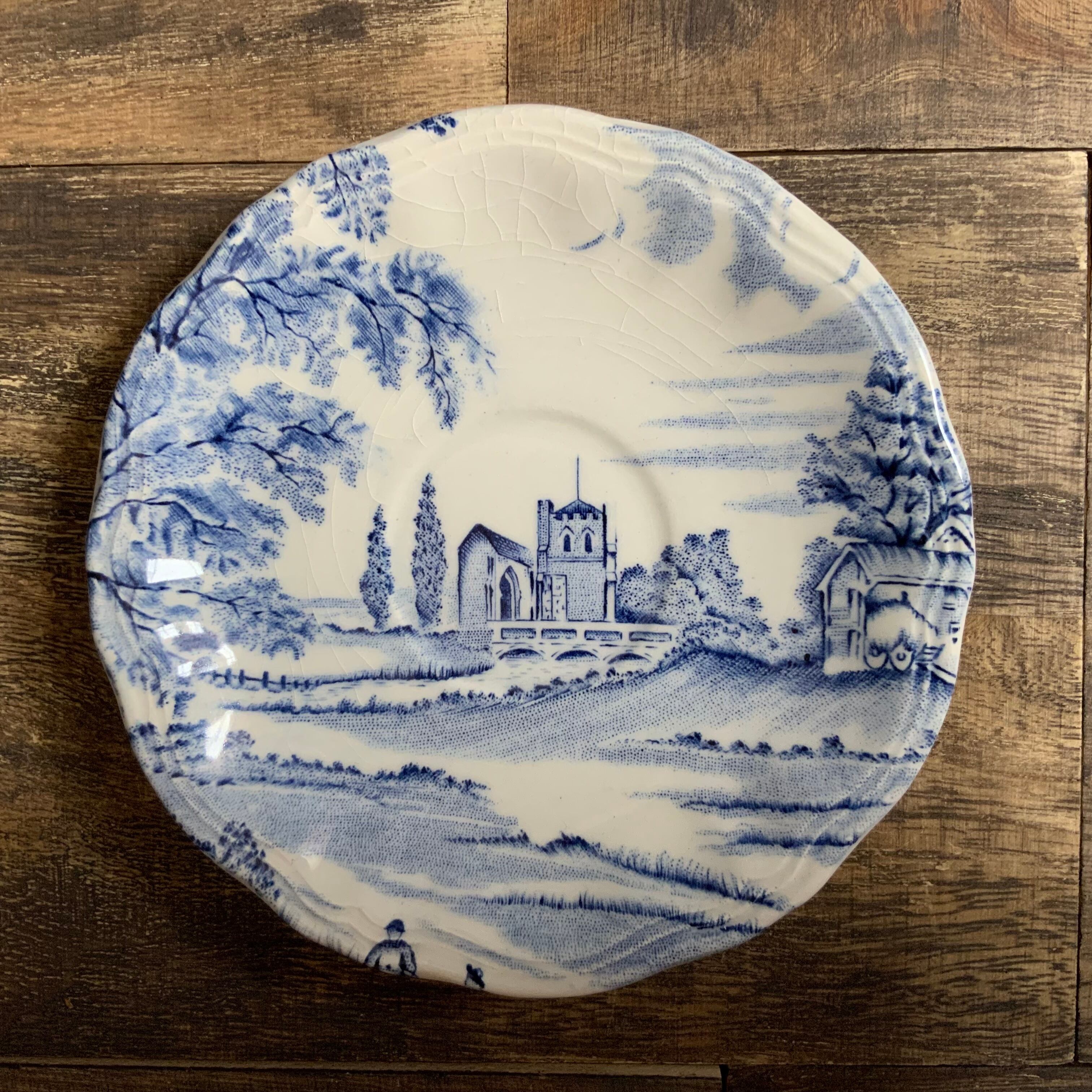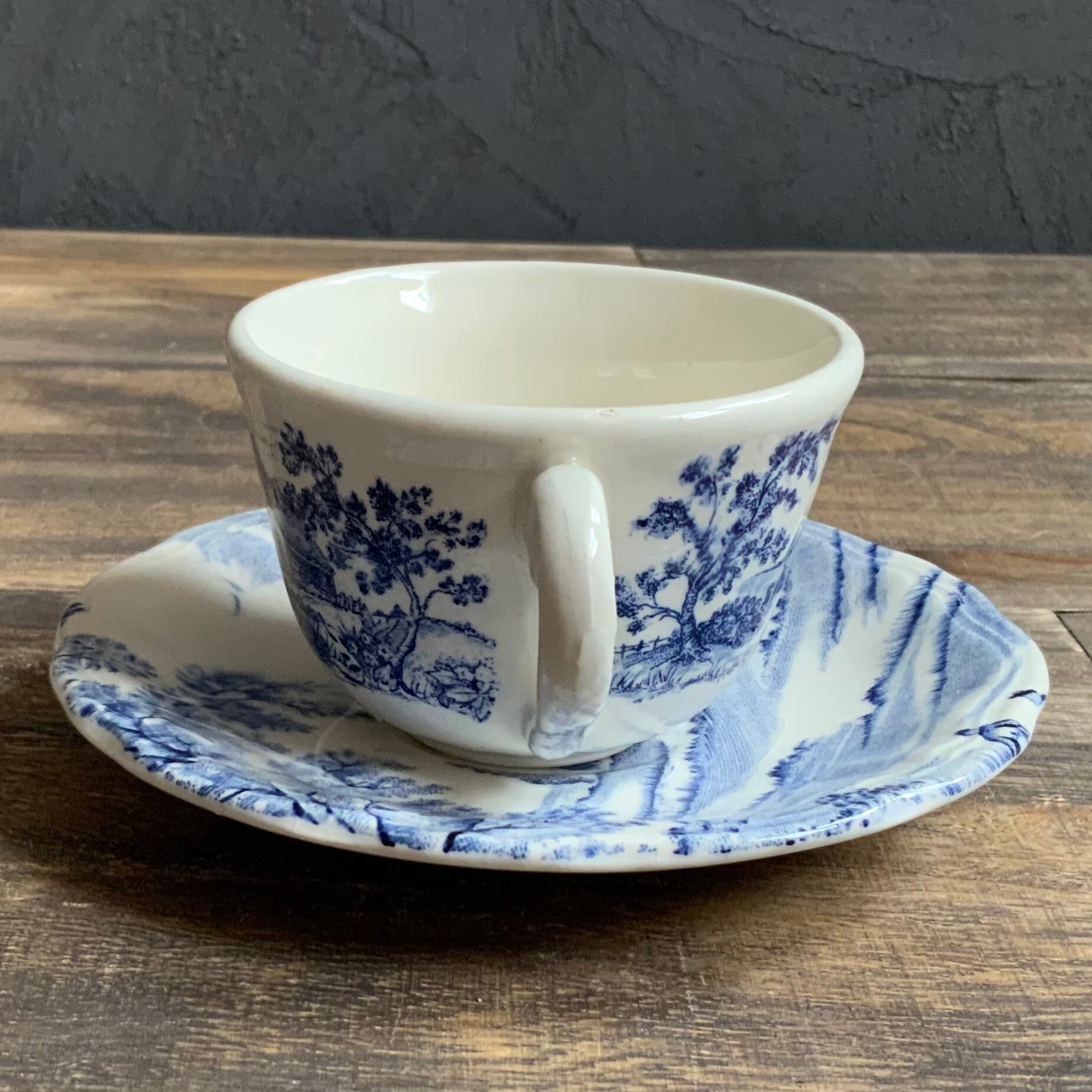 English styleシリーズで、ソーサーはフラワーリム。美しいブルーでイギリスの田舎の風景が描かれています。