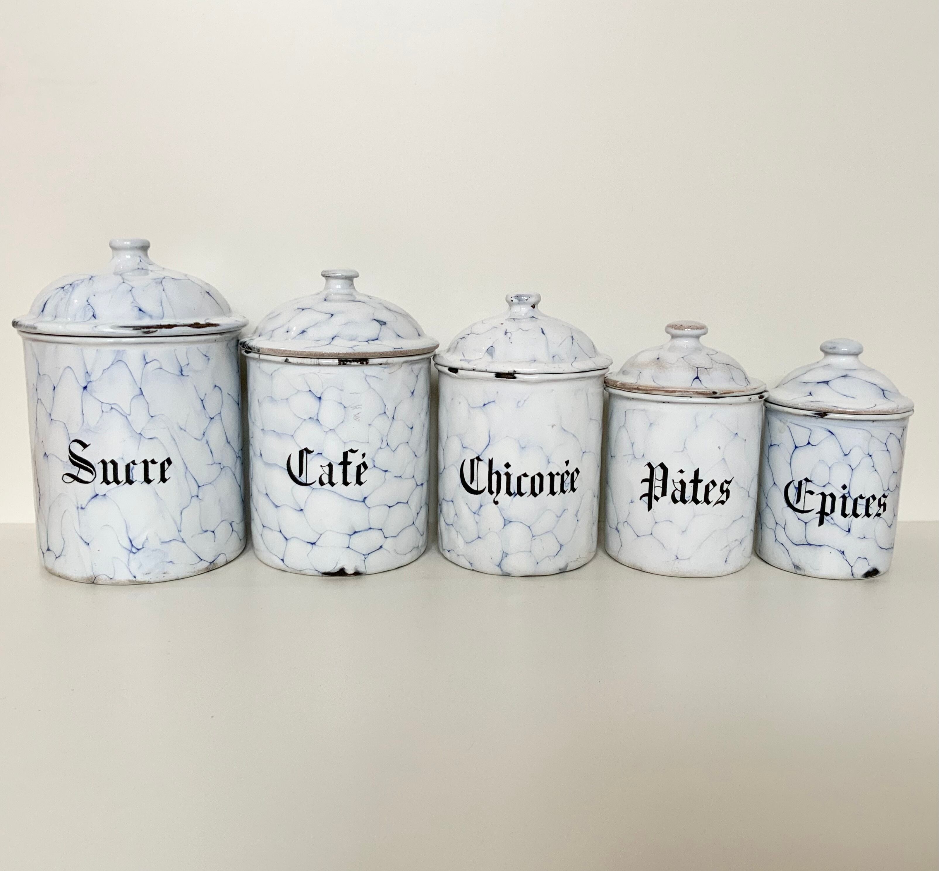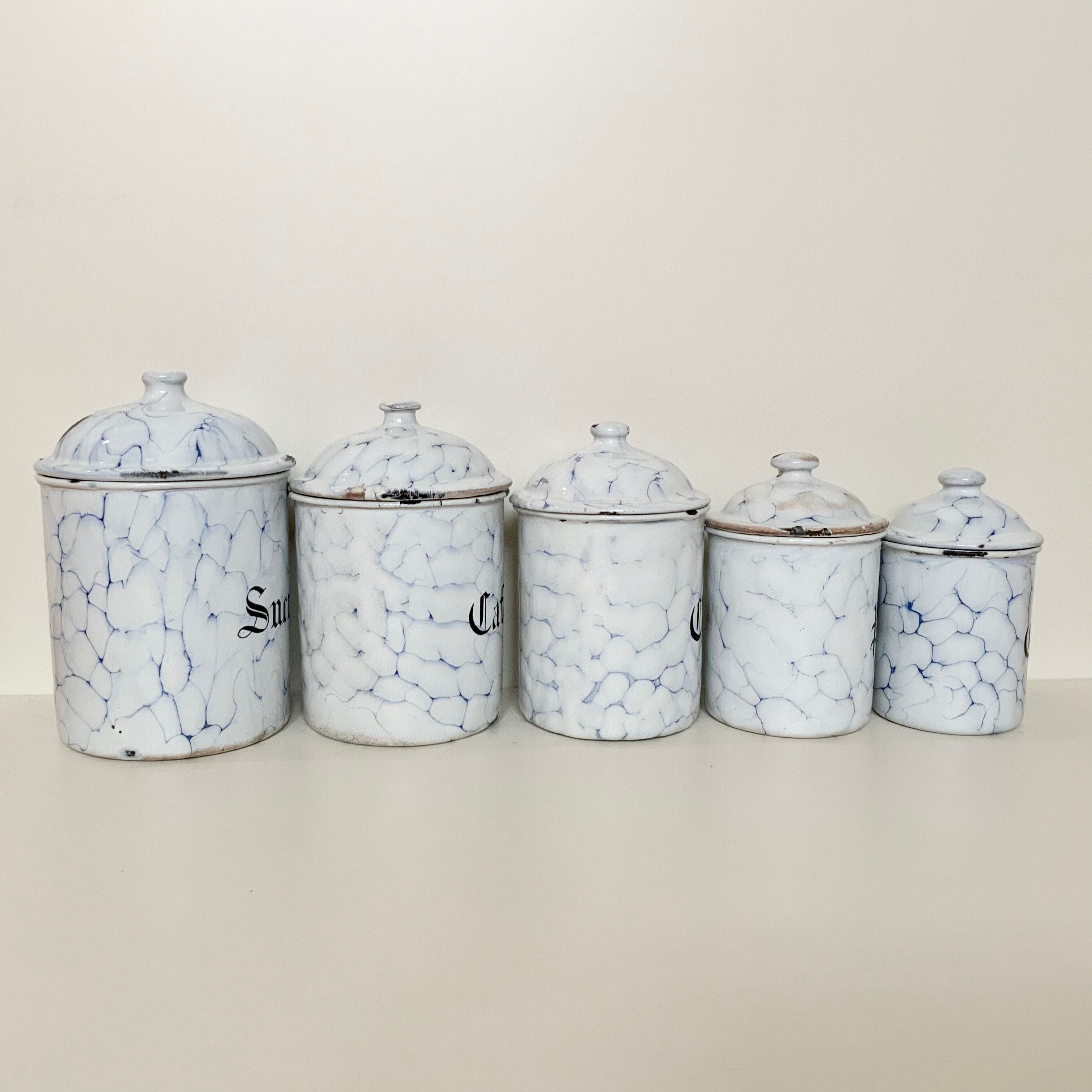 仏G.O社のマーブル柄キャニスター5点セットです。