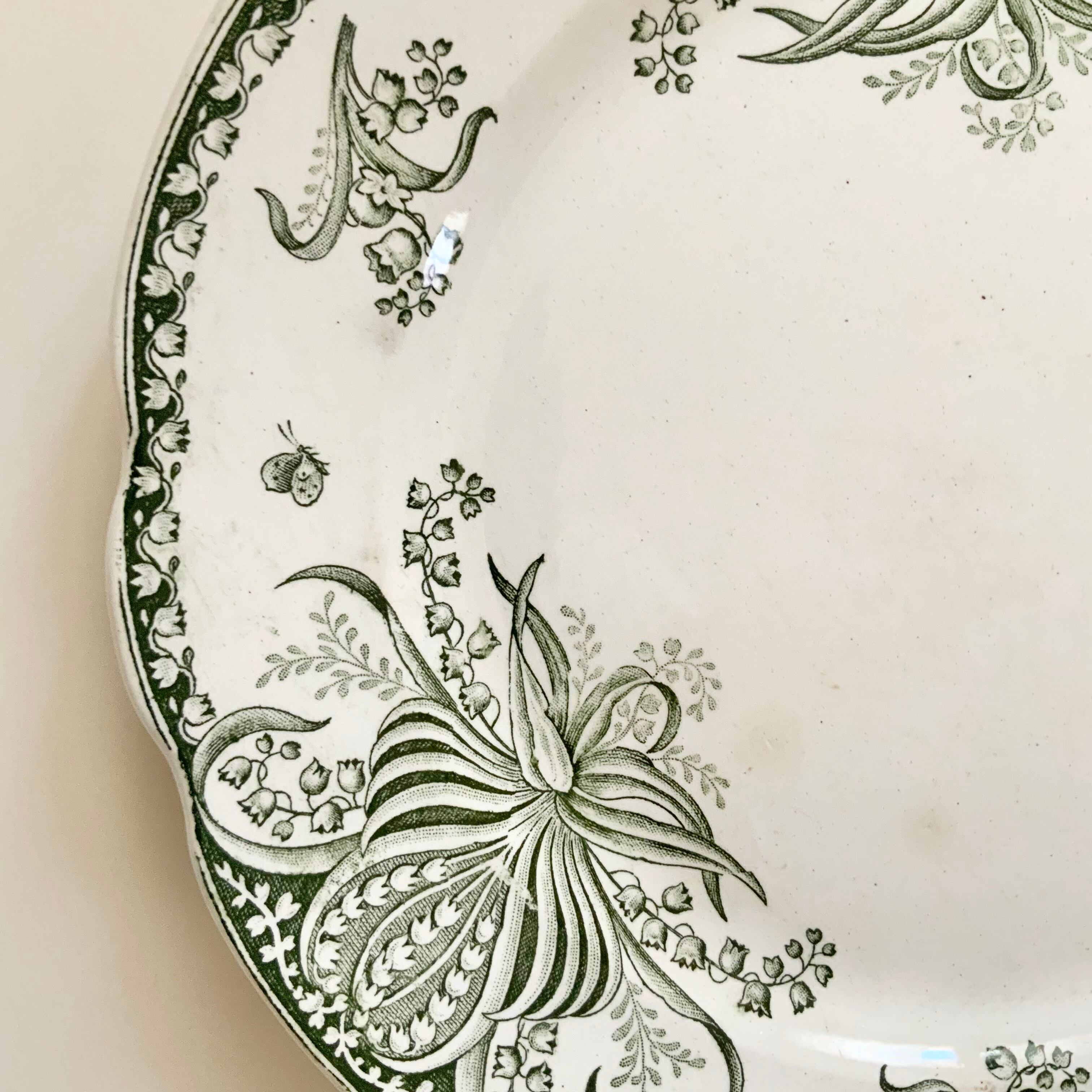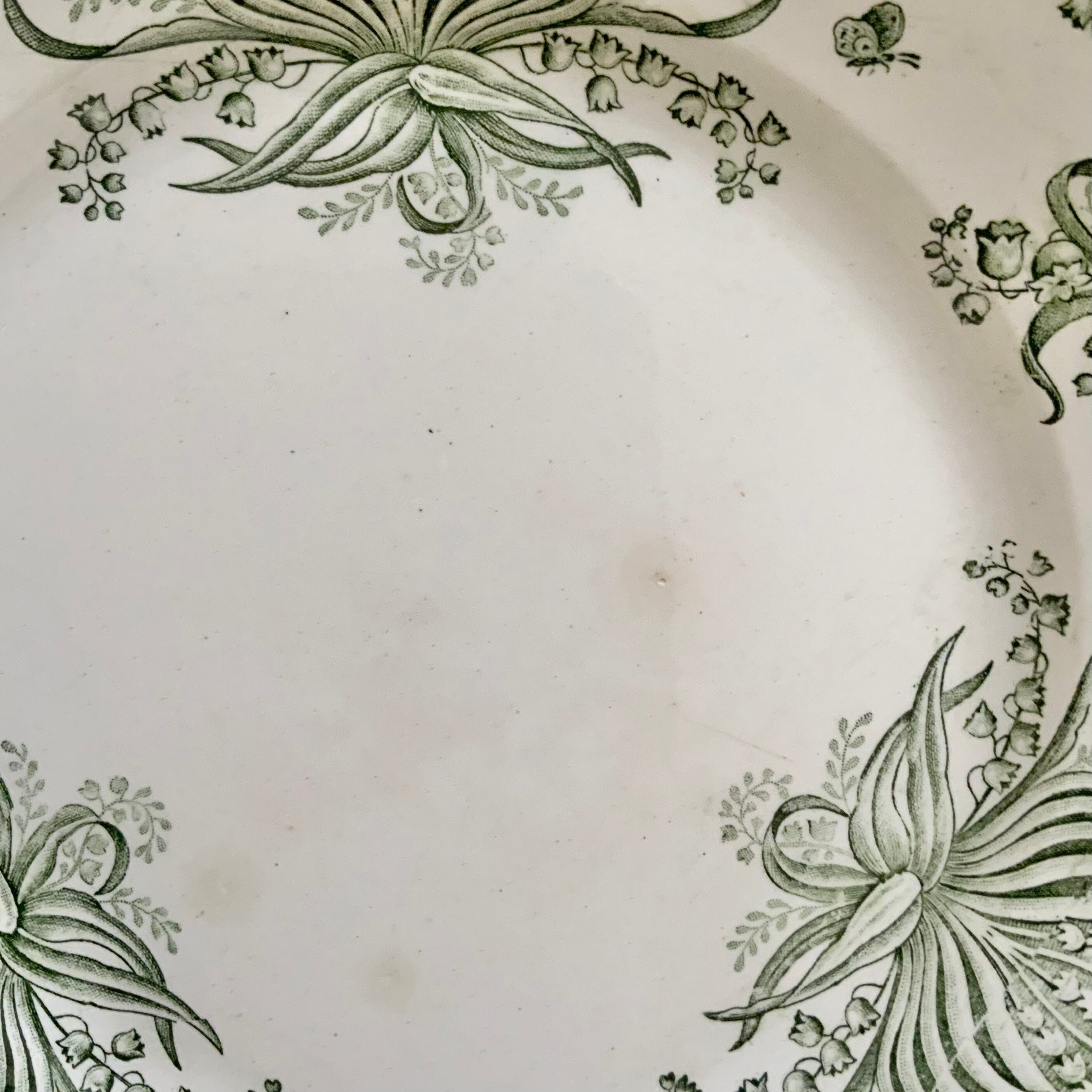 グリーンで可憐な鈴蘭がプレート全体にあしらわれています。縁の模様も愛らしく、所々に小さな蝶が描かれています。