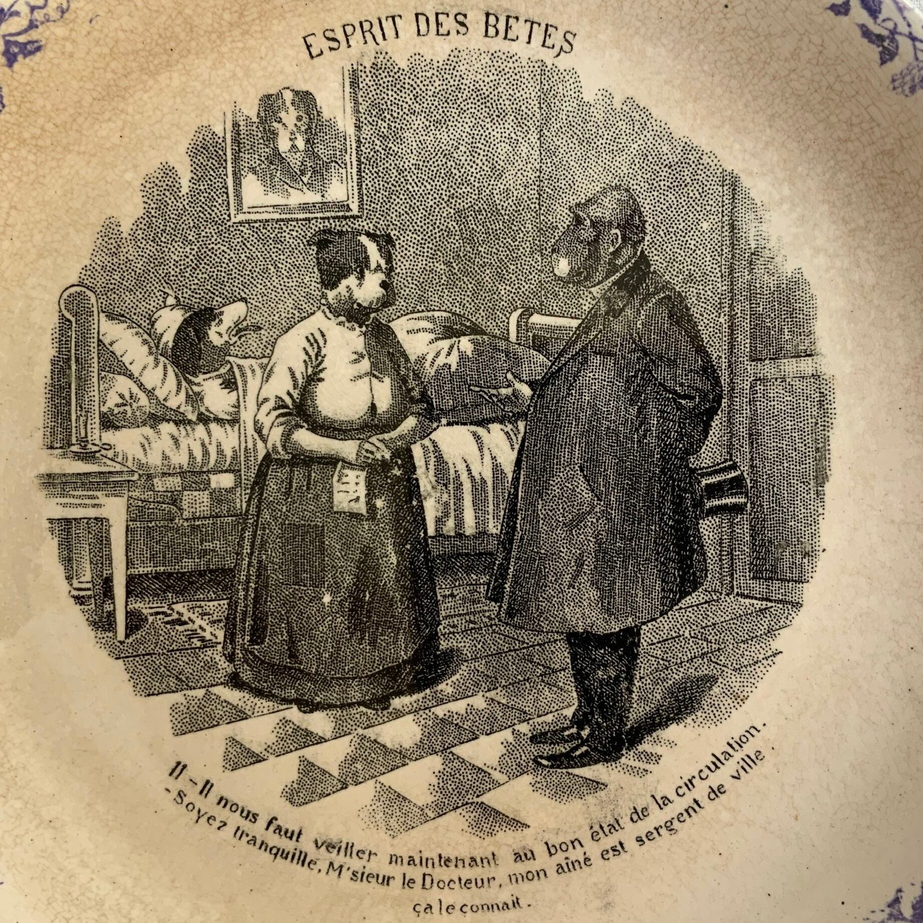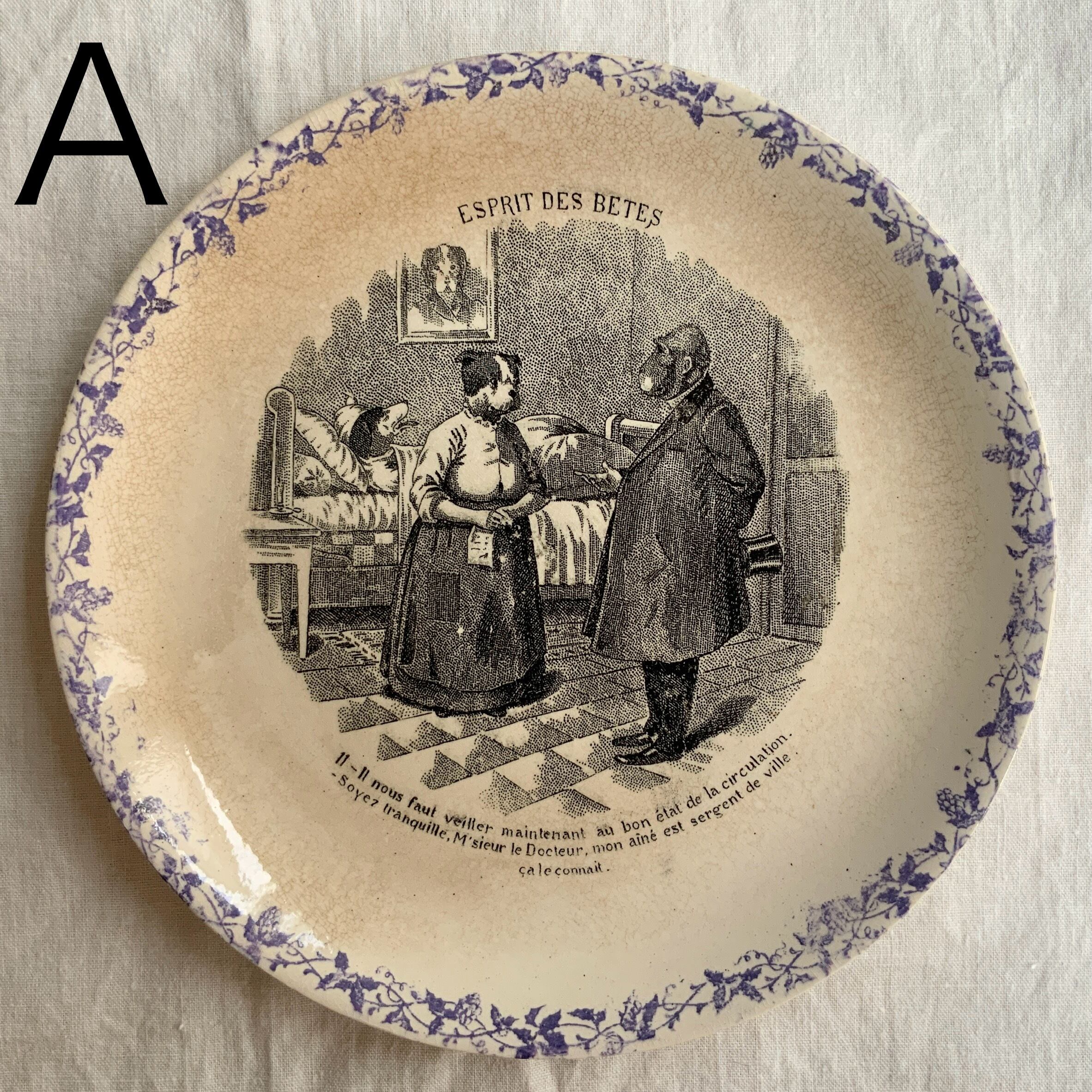 1900年頃に造られたsarreguemines、Esprit des Betesシリーズのトーキングプレートです。