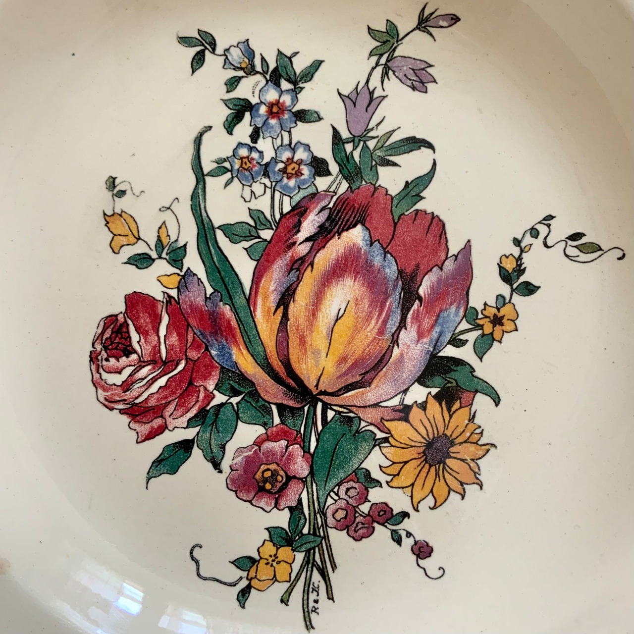 1900年〜1919年頃に Digoin Sarregueminesが造った、Lorraineシリーズのスーププレートです。