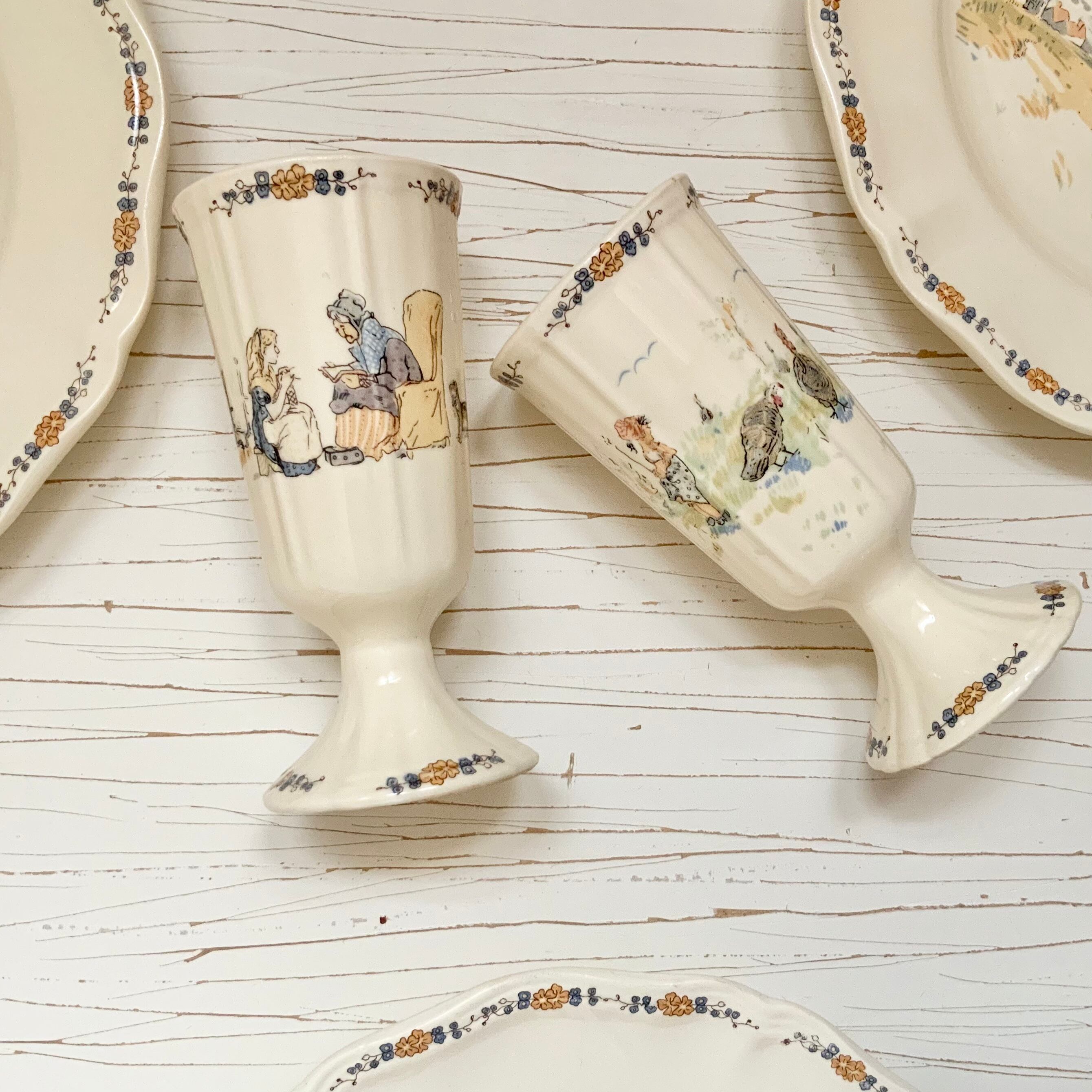 Sarregueminesが1875年に出していたEnfants Richardのシリーズを、後にフラワーリムで造ったゴブレットです。