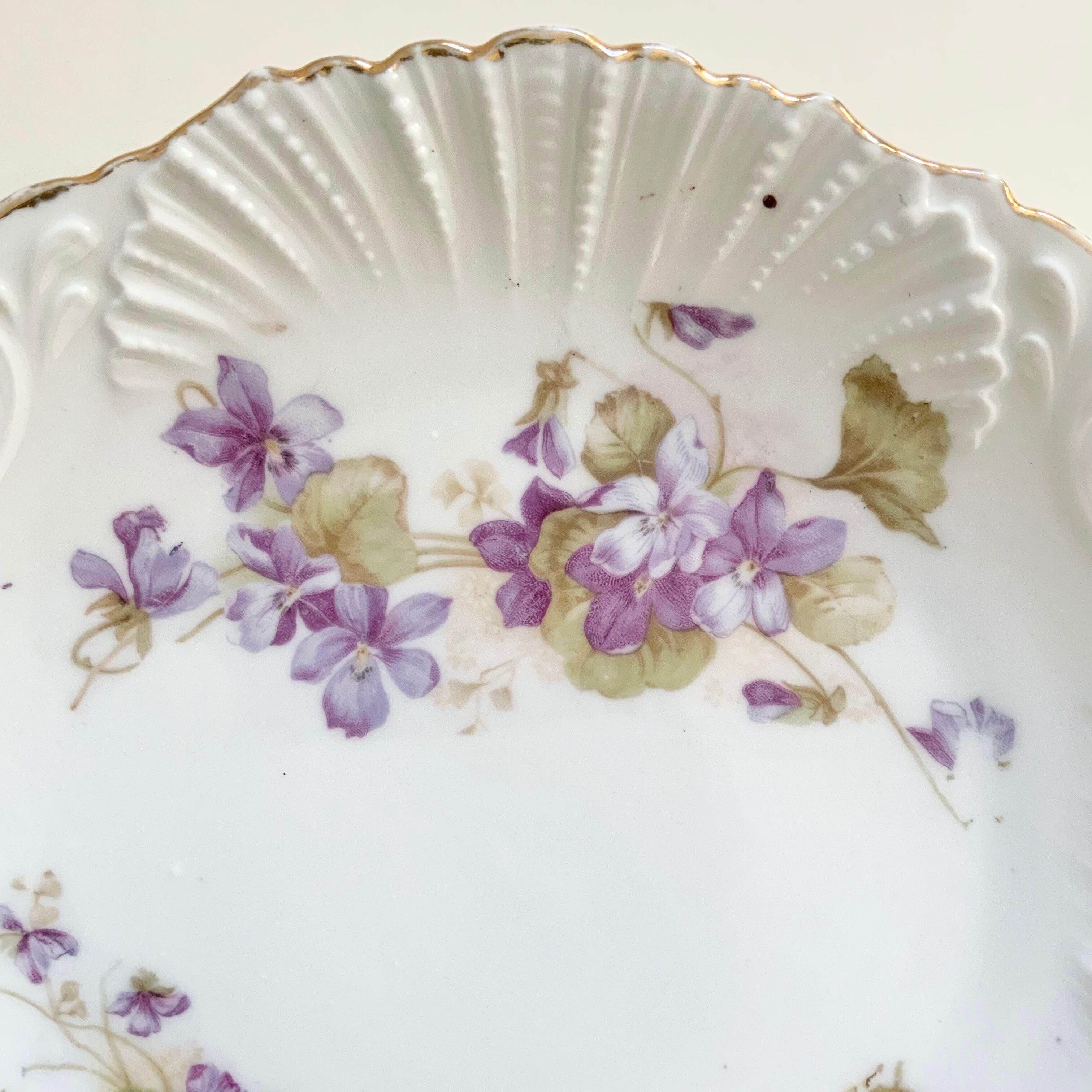 スミレの花が美しく描かれ、縁取りはゴールドと、浮き彫りのようなロココ様式の装飾が見事に施されています。