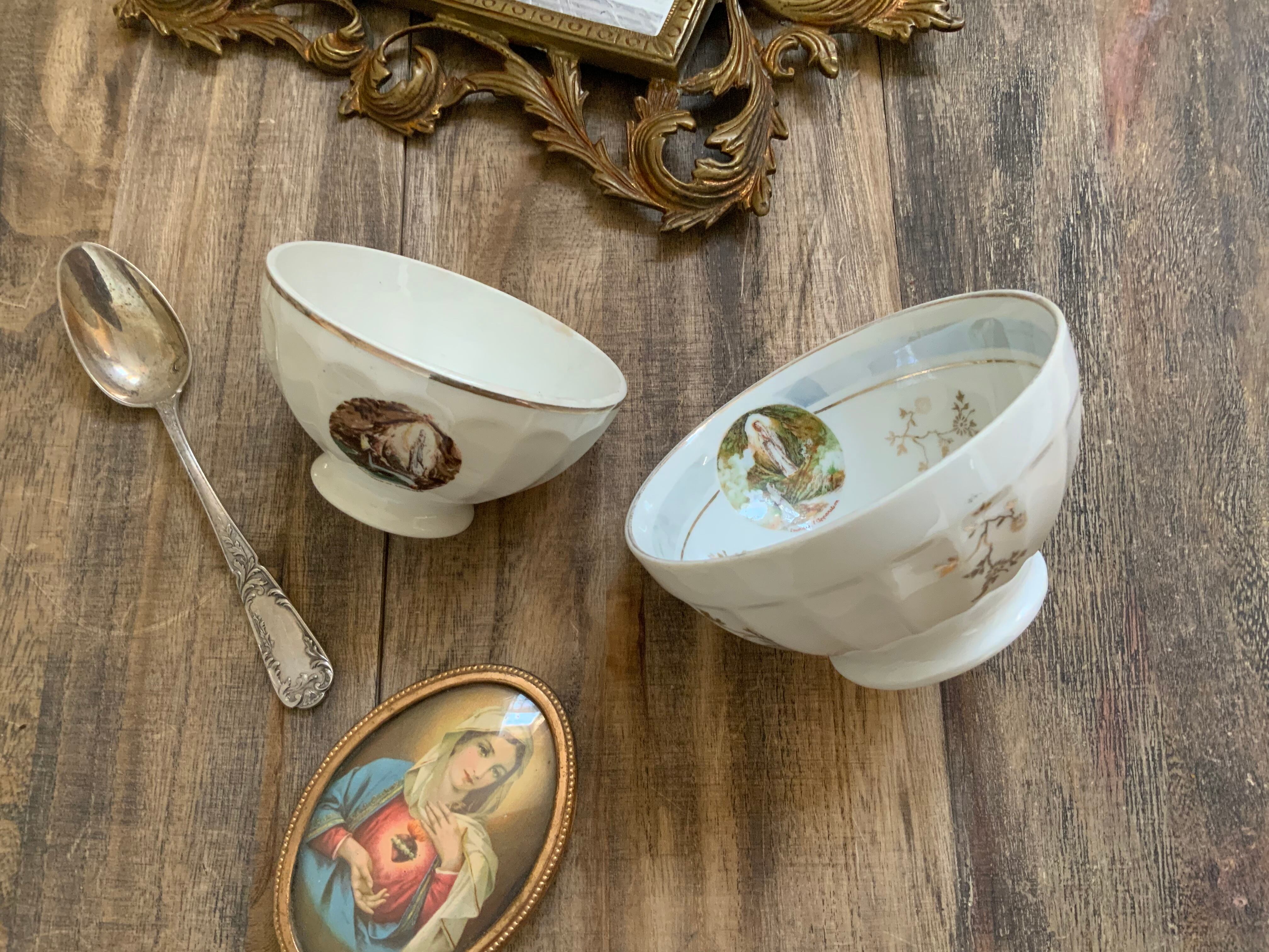 St.Amandによるフランス、ルルドの聖母マリアが描かれたカフェオレボウルです。