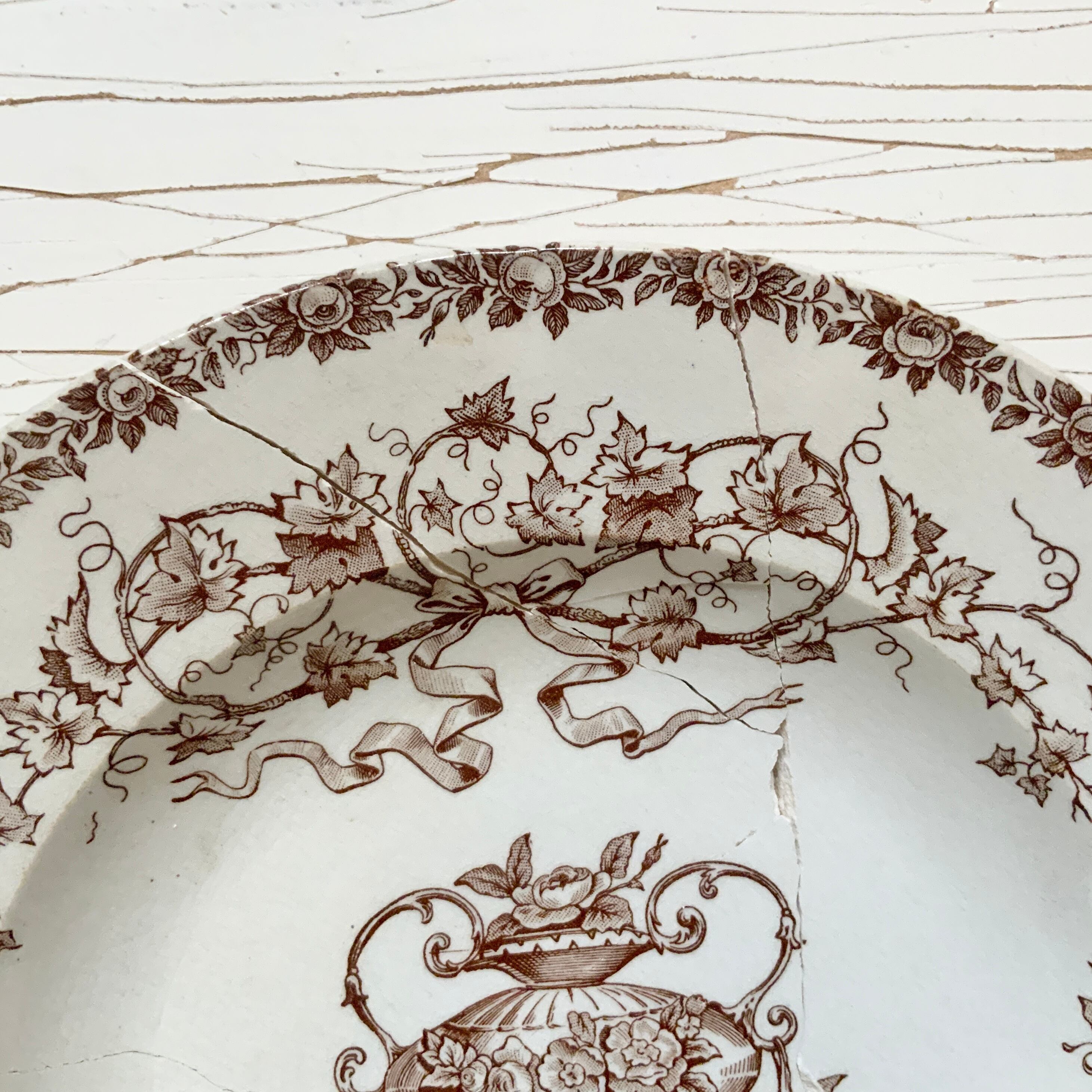 大きく割れています。金継ぎなど修復してお使いいただければと思います。