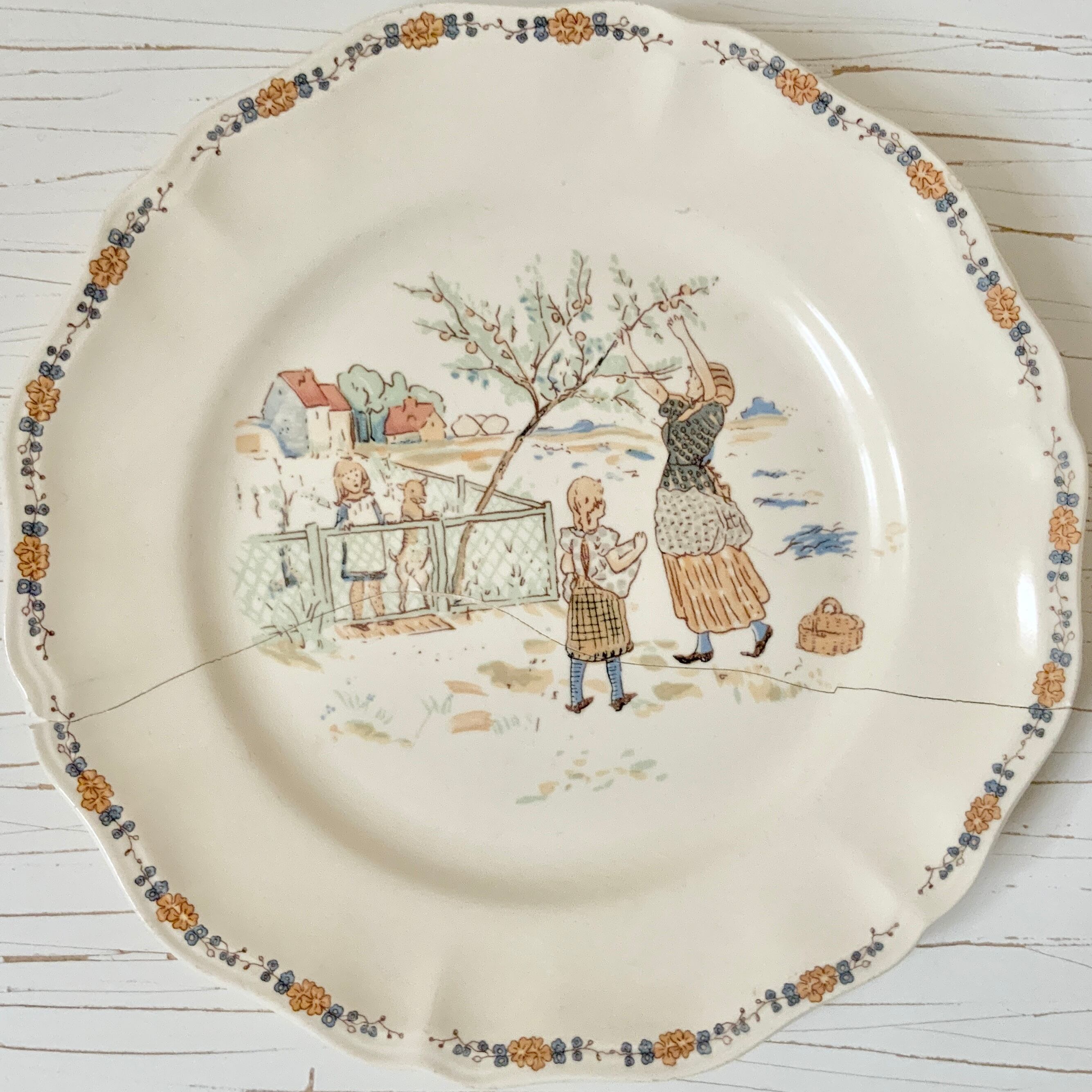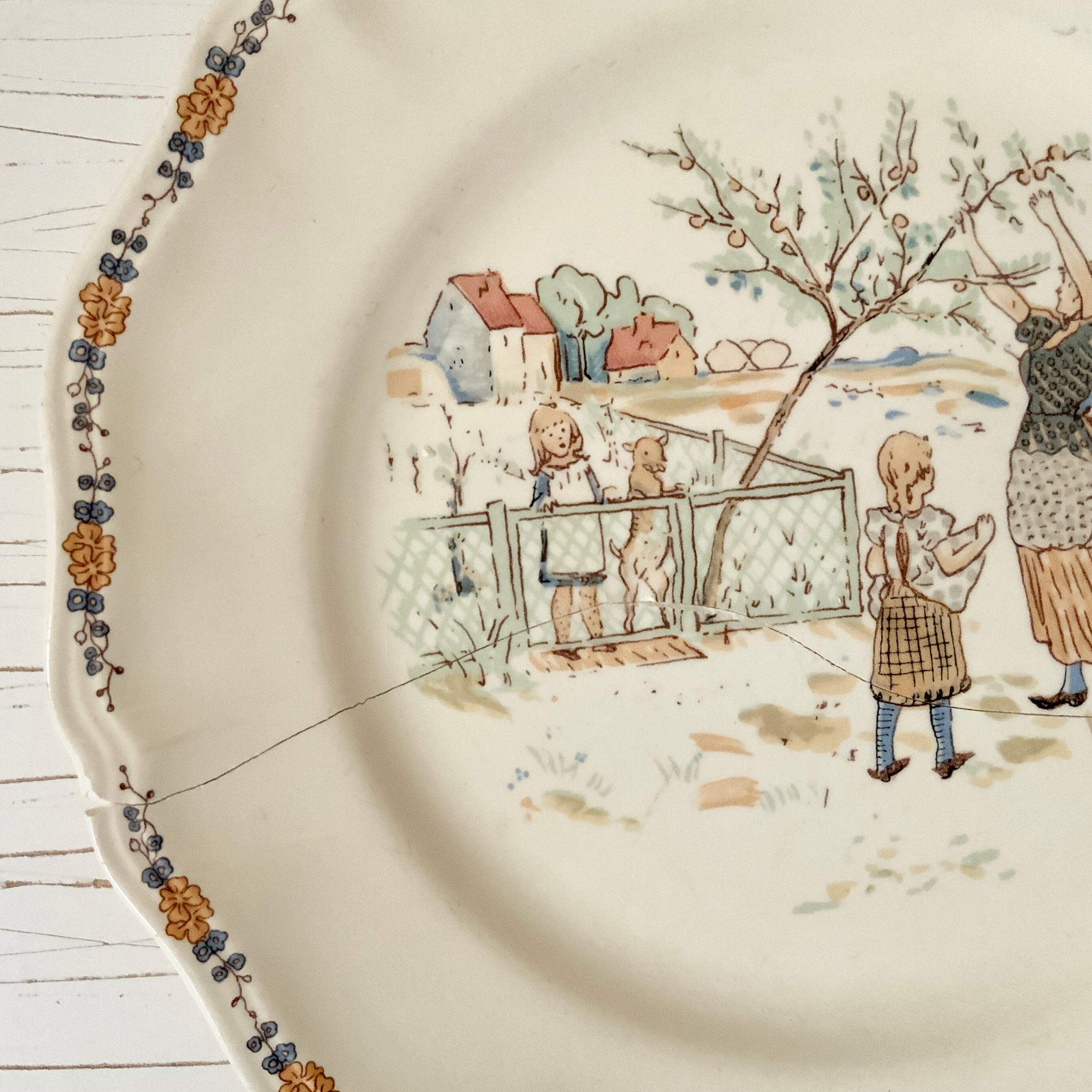 【金継ぎ用】Sarreguemines プレート Enfants Richard