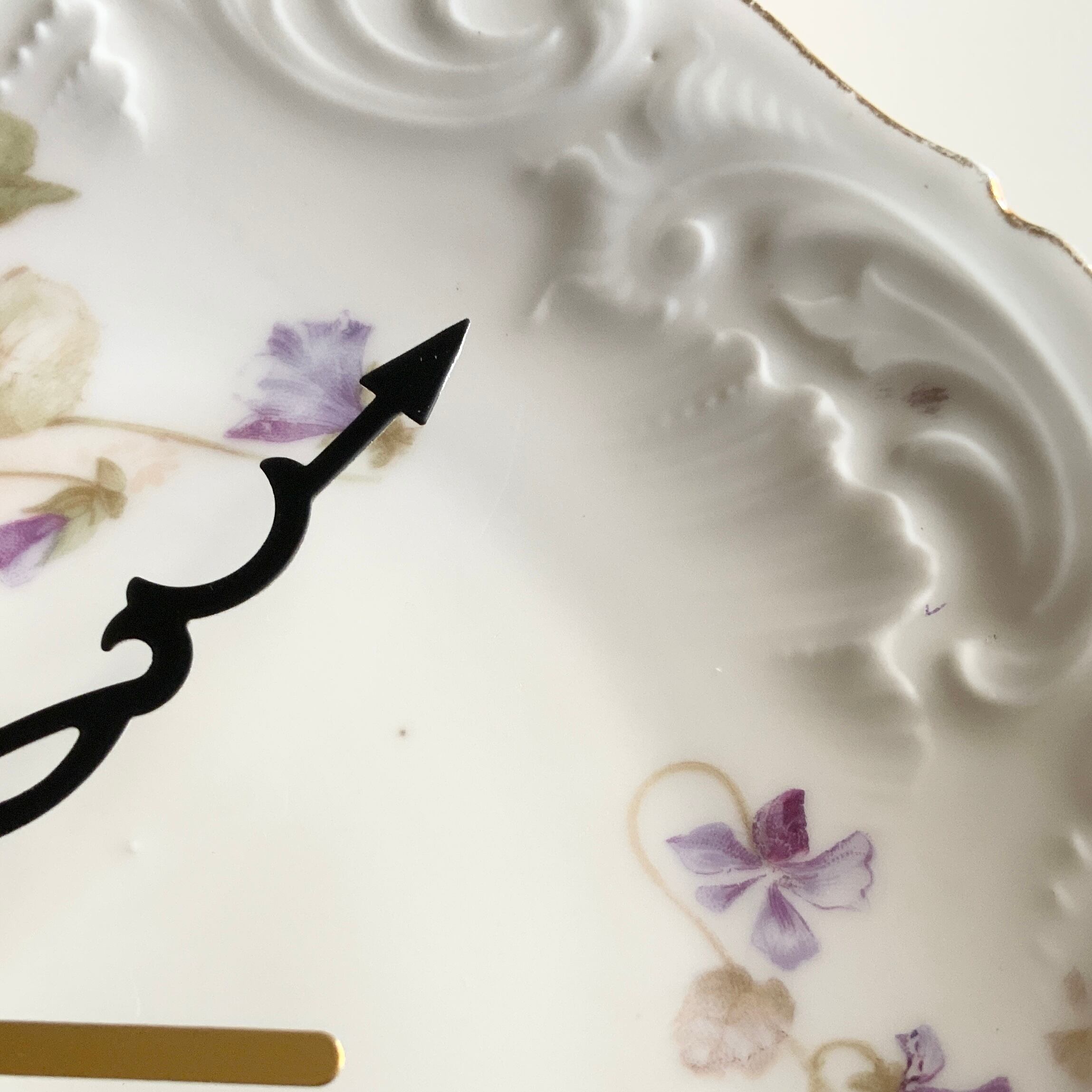 ベルギーアンティークの美しいスミレのデザートプレートを、壁掛け時計に加工いたしました。