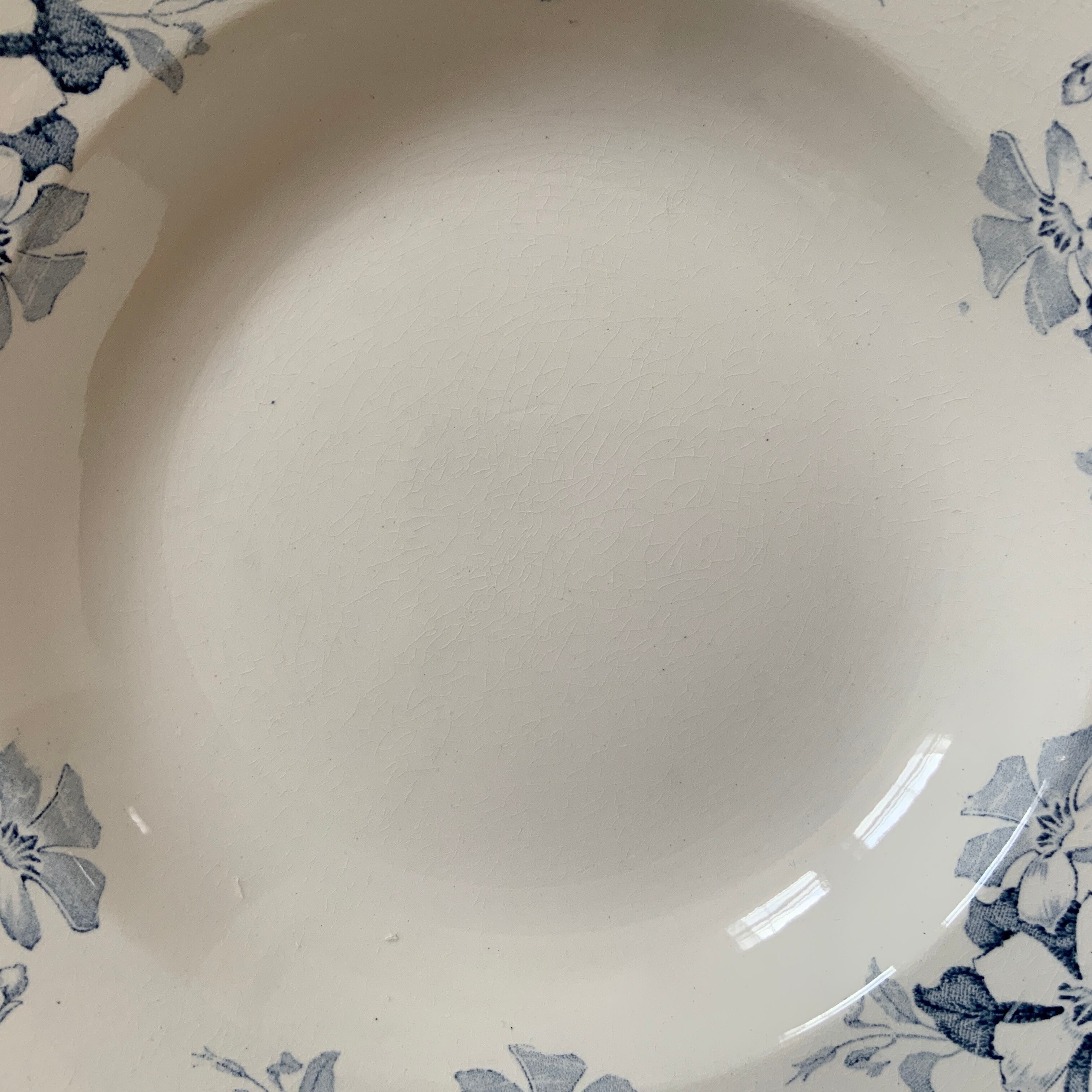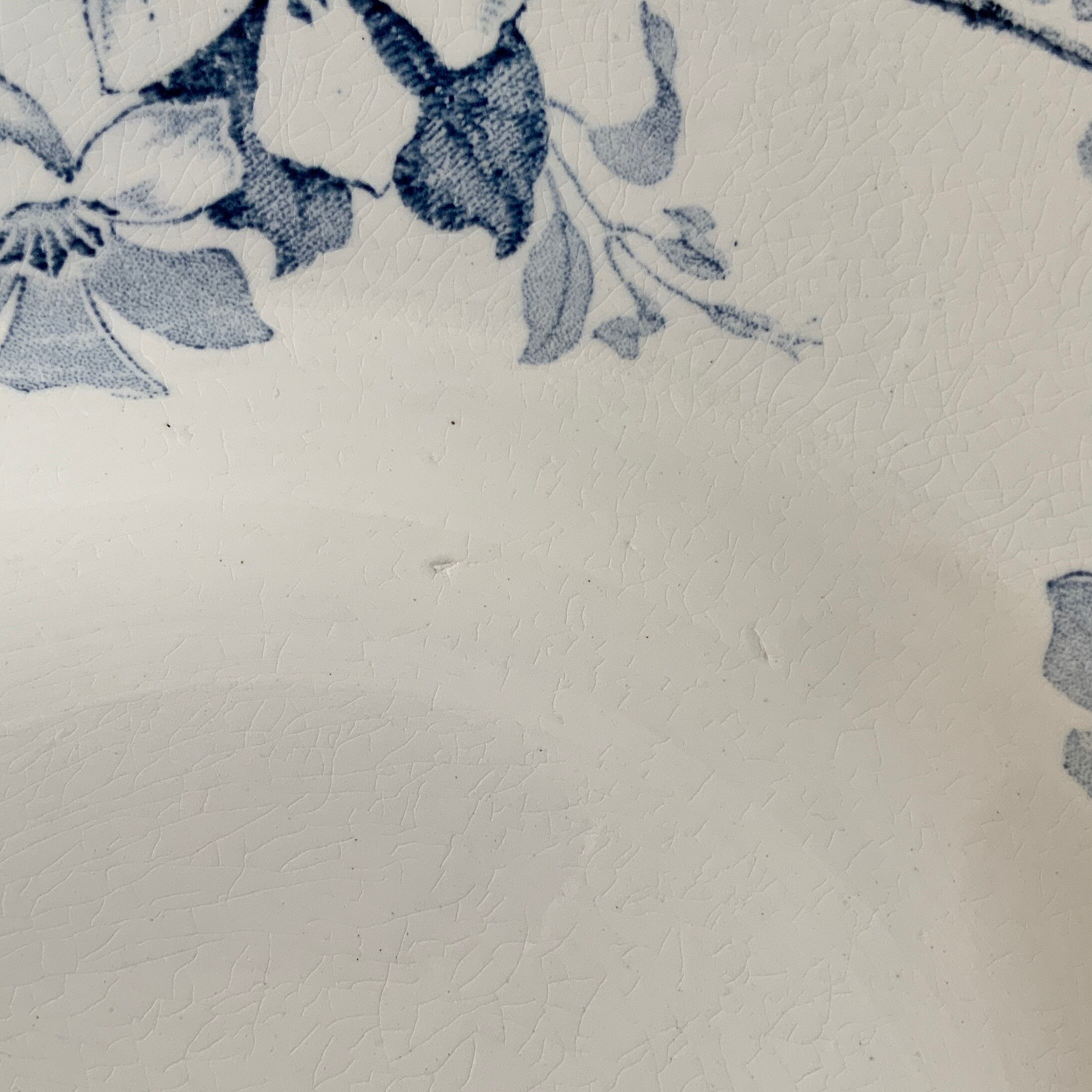 深みのあるブルーでクレマチスの花が繊細に描かれています。