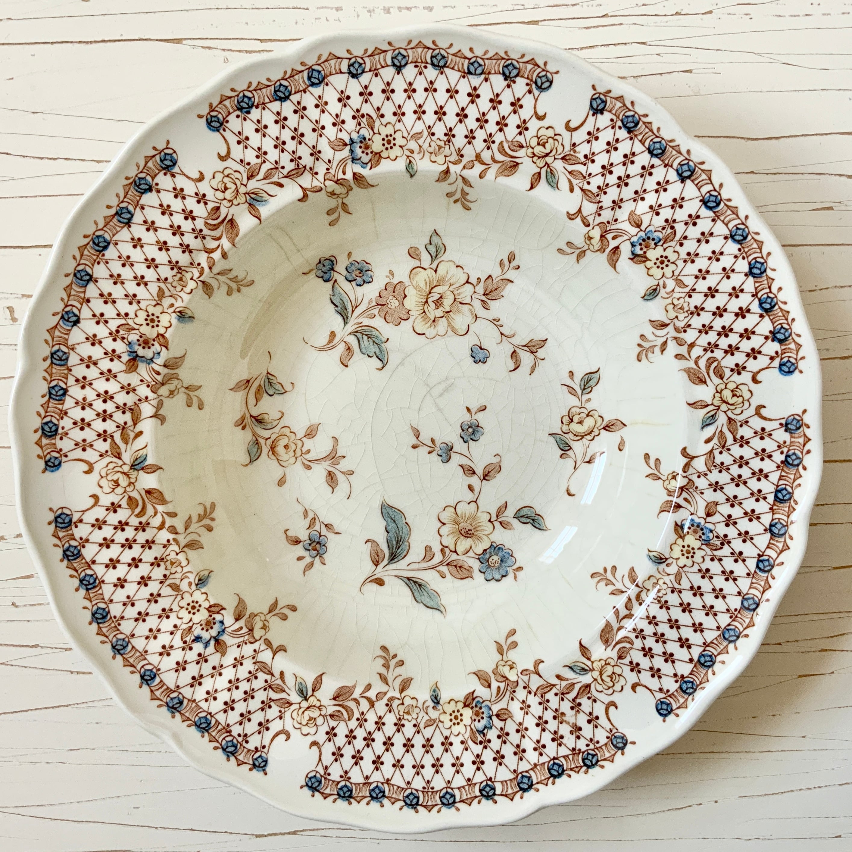 Royal Tudor ブラウンフラワーのスーププレート Lattice